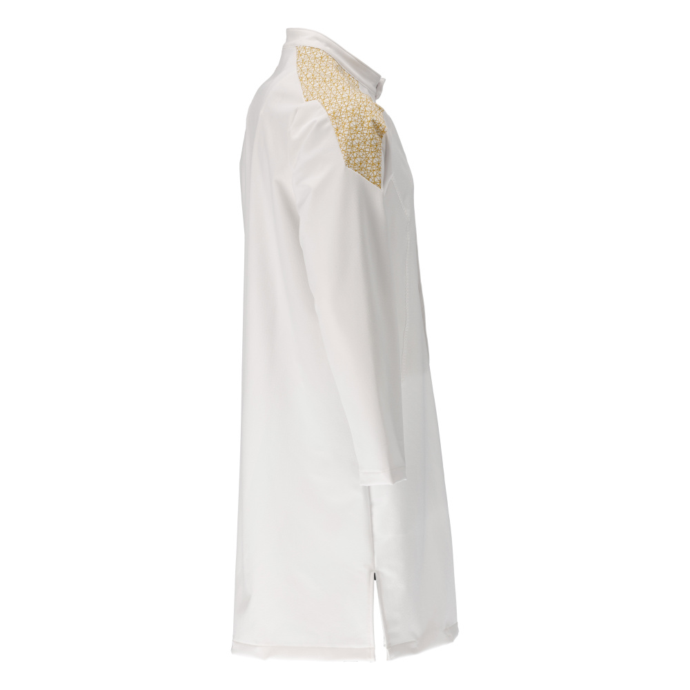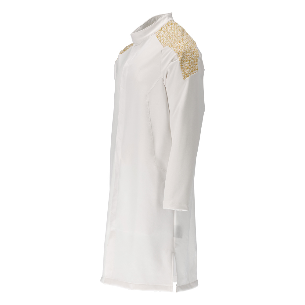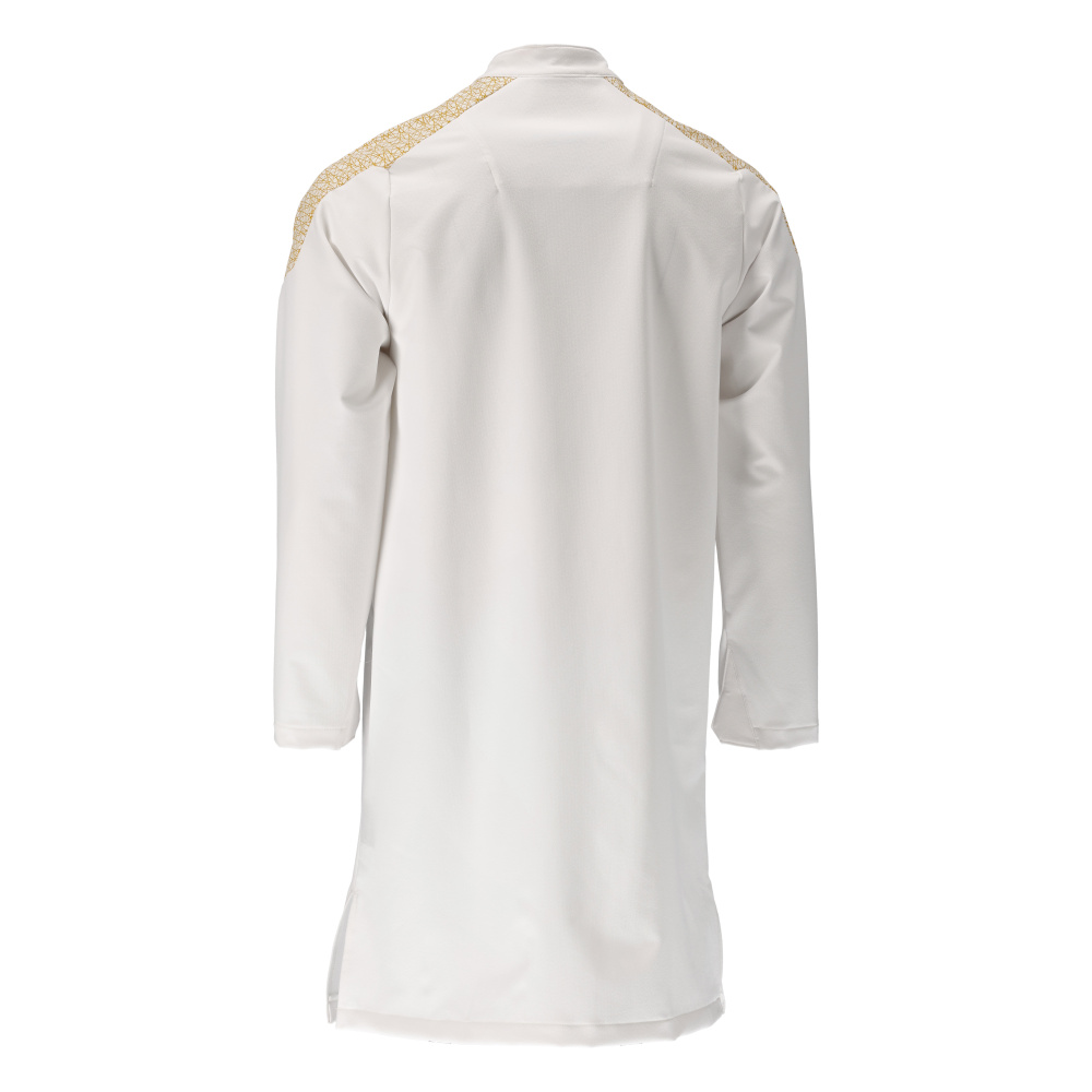Tissu ultimate stretch de poids léger et résistant. Séchage rapide. Boutons-pression pour resserrer les poignets. Fentes sur les côtés. Fermetures avec boutons-pression non visibles/recouverts. Boutons-pression métalliques. Emplacements pour marquage du vêtement, puce HF et puce UHF. Marquage de couleur pour chaque taille. Le produit est résistant au lavage industriel.