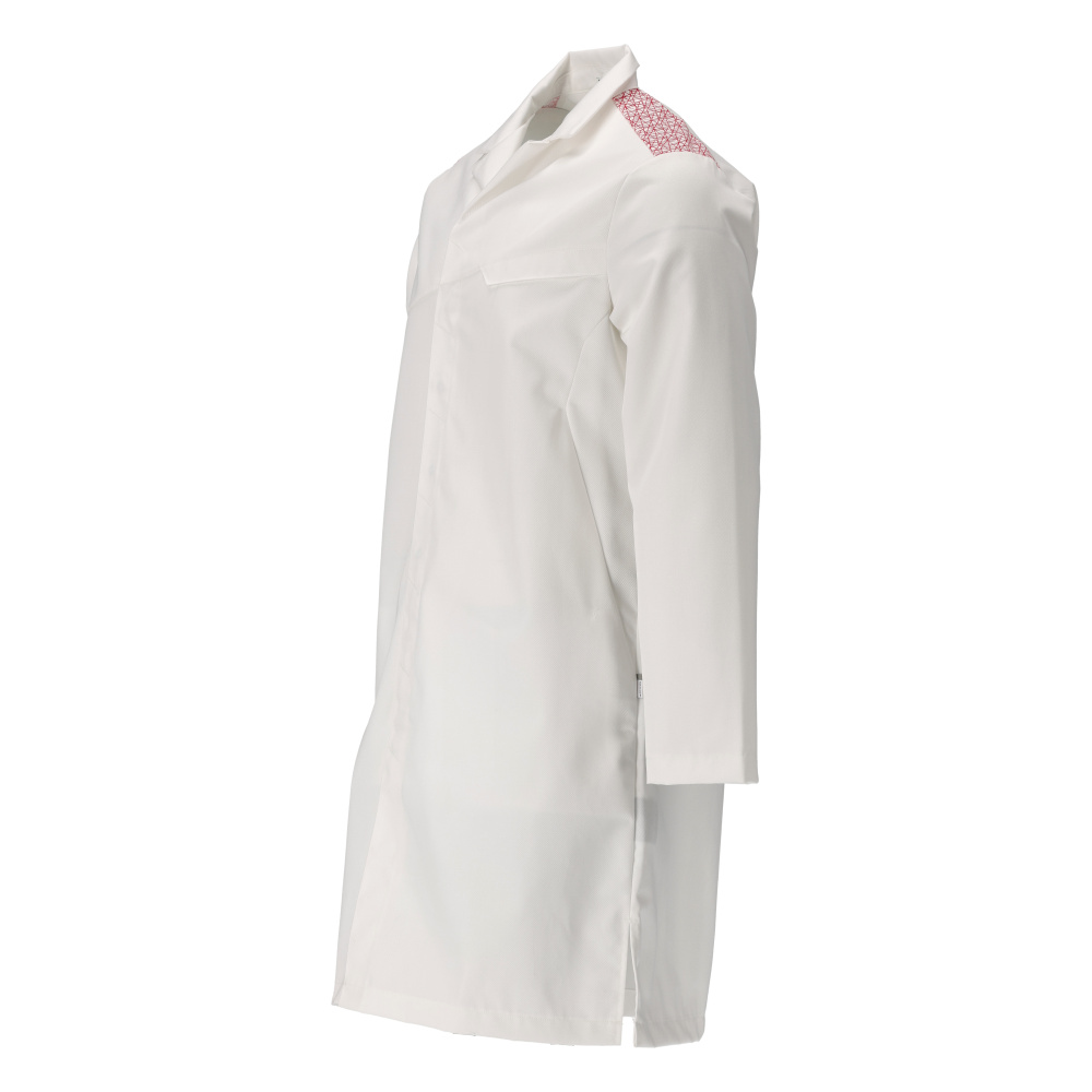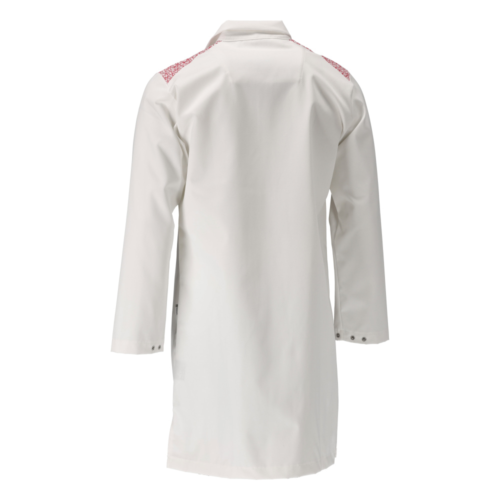 Fermetures avec boutons-pression non visibles/recouverts. Boutons-pression pour resserrer les poignets. Boutons-pression métalliques. Fentes sur les côtés. Poche intérieure. Emplacements pour marquage du vêtement, puce HF et puce UHF. Marquage de couleur pour chaque taille. Le produit est résistant au lavage industriel.