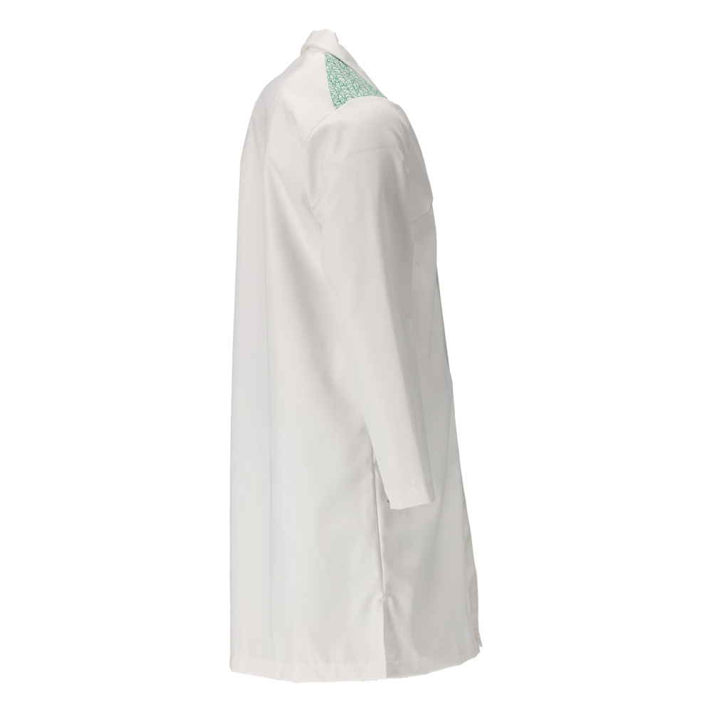 Fermetures avec boutons-pression non visibles/recouverts. Boutons-pression pour resserrer les poignets. Boutons-pression métalliques. Fentes sur les côtés. Poche intérieure. Emplacements pour marquage du vêtement, puce HF et puce UHF. Marquage de couleur pour chaque taille. Le produit est résistant au lavage industriel.