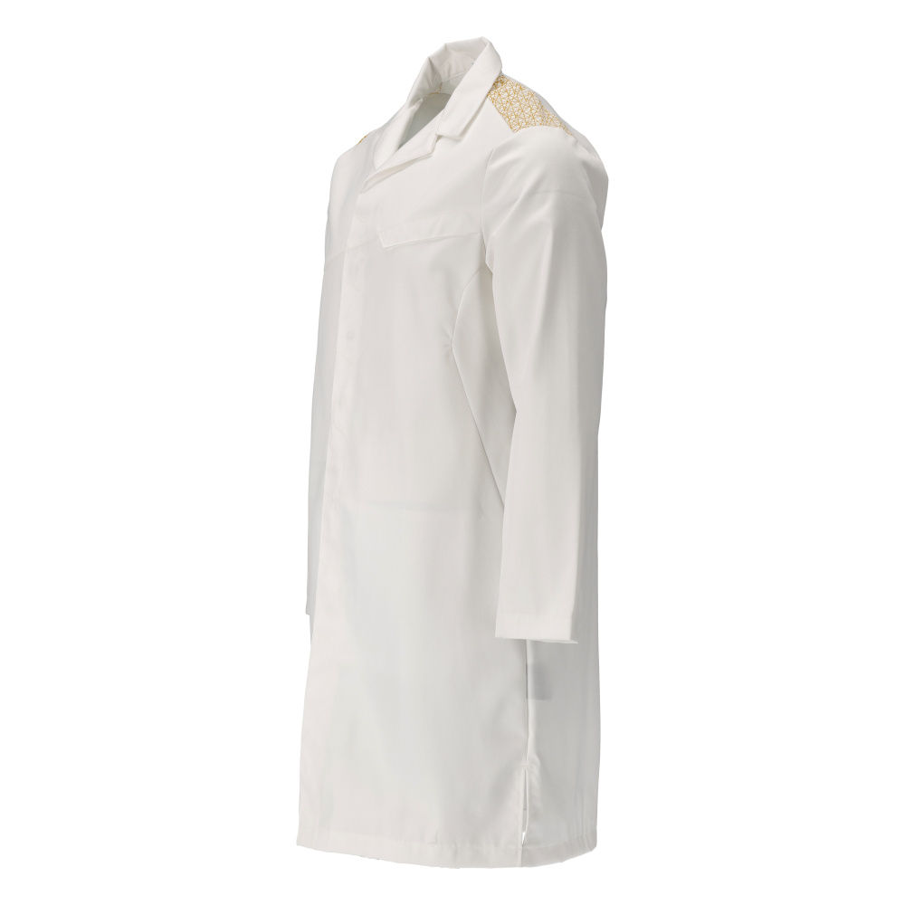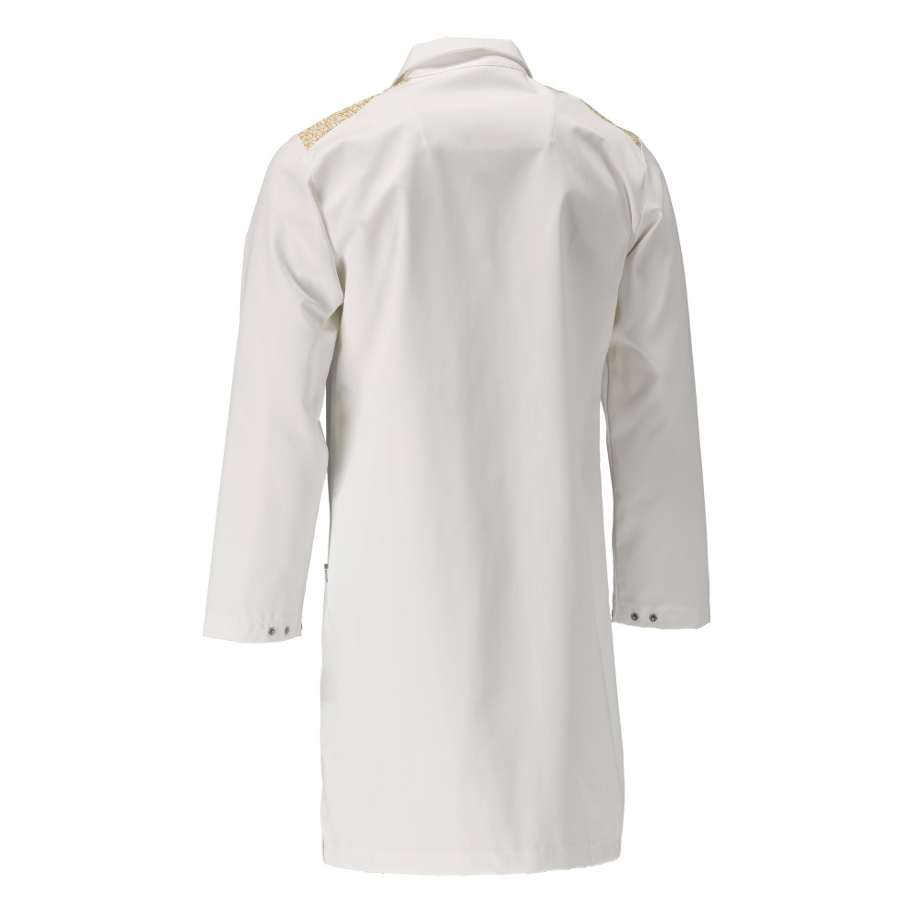 Fermetures avec boutons-pression non visibles/recouverts. Boutons-pression pour resserrer les poignets. Boutons-pression métalliques. Fentes sur les côtés. Poche intérieure. Emplacements pour marquage du vêtement, puce HF et puce UHF. Marquage de couleur pour chaque taille. Le produit est résistant au lavage industriel.