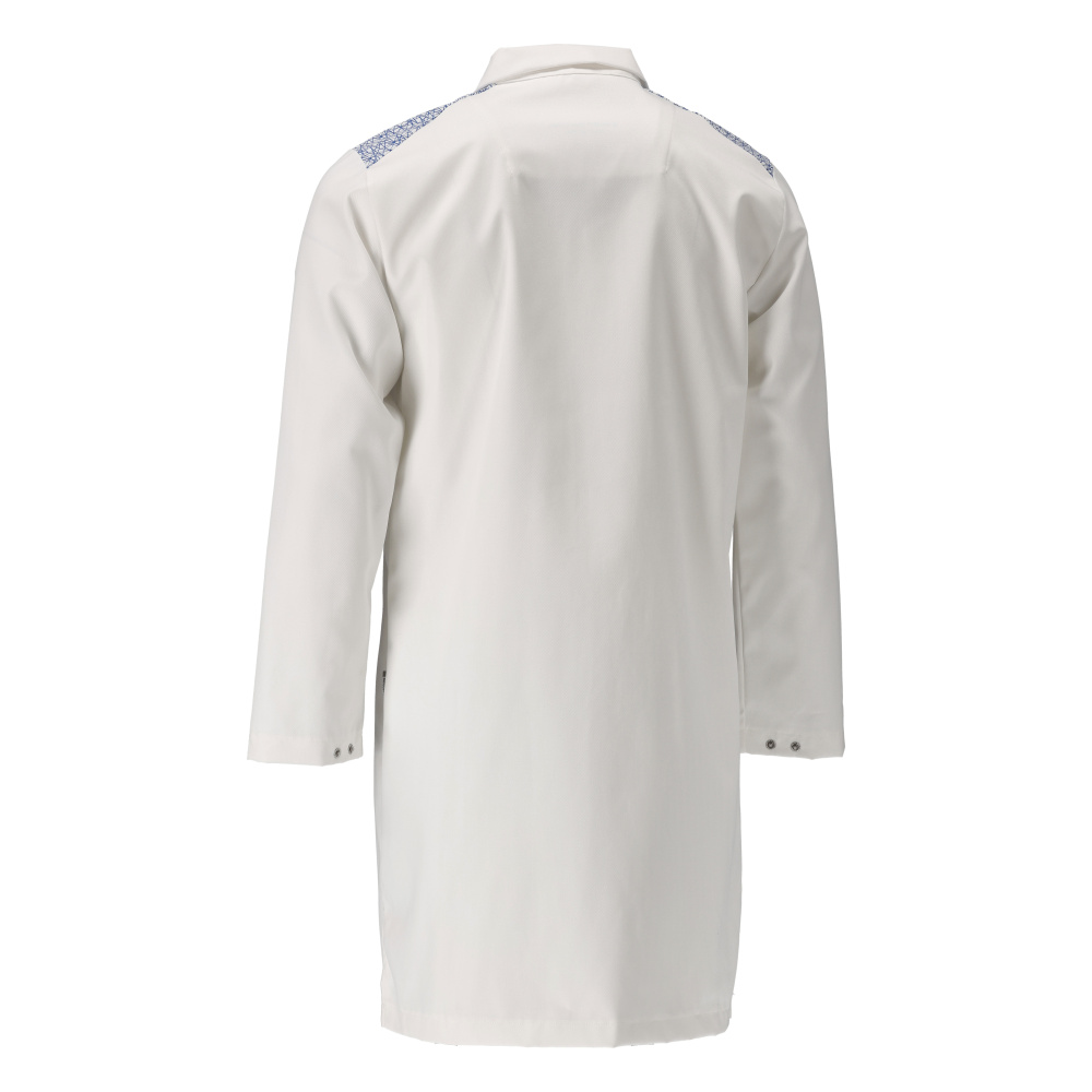 Fermetures avec boutons-pression non visibles/recouverts. Boutons-pression pour resserrer les poignets. Boutons-pression métalliques. Fentes sur les côtés. Poche intérieure. Emplacements pour marquage du vêtement, puce HF et puce UHF. Marquage de couleur pour chaque taille. Le produit est résistant au lavage industriel.