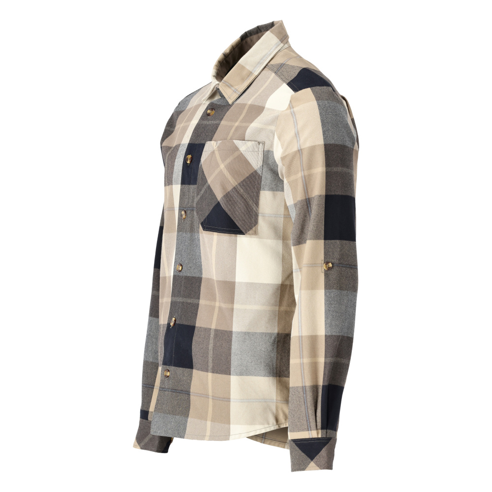 Fermeture à boutons. Poche de poitrine avec poche pour stylo. Les manches peuvent être roulées et fixées à l'aide d'un bouton. Fentes de poignets renforcées. Poignets ajustables à l'aide de boutons.
