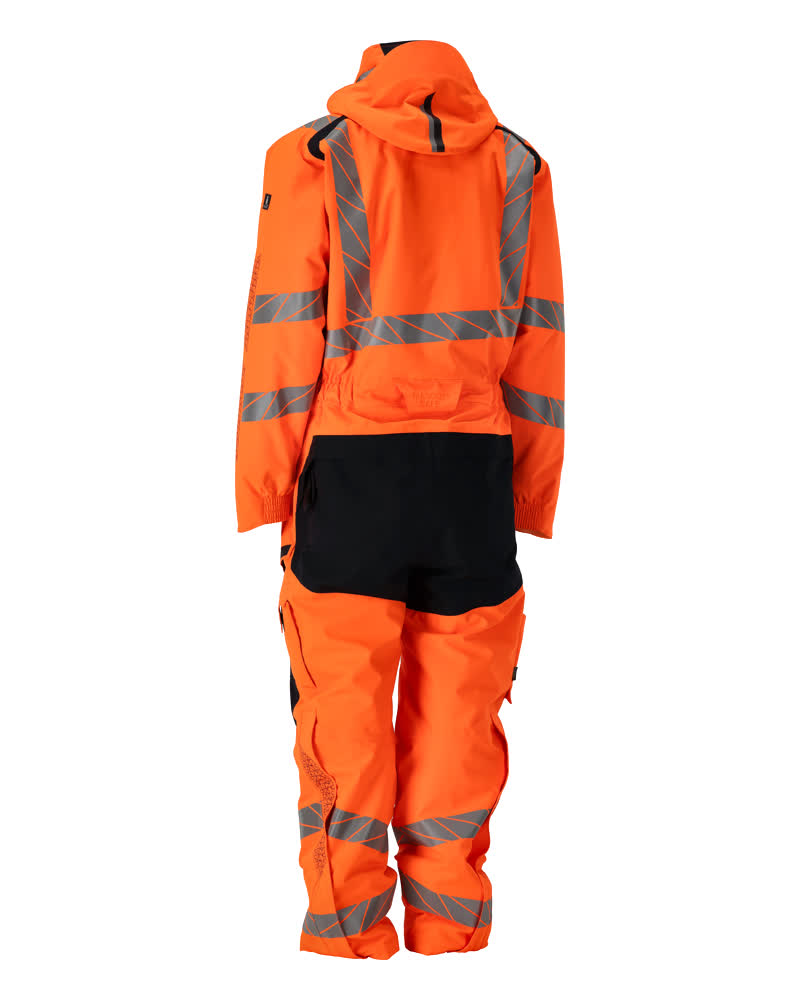 Fluorescent(e) avec bandes rétroréfléchissantes transversales en biais. Un tissu très résistant à l'usure, respirant, imperméable et coupe-vent. Avec CLIMASCOT® Lightweight Insulation. Coutures thermocollées. Col montant. Capuche amovible, avec doublure et cordon élastique de serrage. Fermeture zippée double curseur avec rabat coupe-vent fermé par boutons-pression. Porte-badge amovible. Poche poitrine avec fermeture zippée étanche. Poches intérieures - dont deux zippées et une ouverte en filet. Elastique aux poignets. Zip intérieur au bas du dos permettant la réalisation d'impressions/broderies. Elastique à la taille. Jambes ergonomiques. Passants de ceinture. Poches latérales. Poches arrière renforcées et rabat. Patte-marteau cachée de chaque côté. Poche mètre pliant renforcée en Kevlar®. Poches à rabat à l'avant des cuisses. Poche cuisse avec poche téléphone doublée et fermeture aimantée. Jupe à neige intérieure au niveau de la jambe. Zip sous rabat coupe-vent sur la face intérieure des jambes. Avec effets d'impression.
