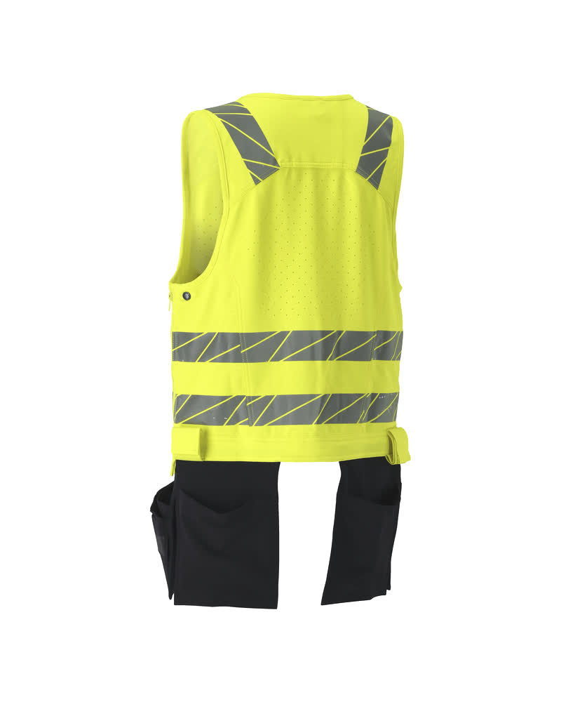 Tissu fluorescent avec bandes rétroréfléchissantes. Offre une finition hydrofuge. Tissu ultimate stretch de poids léger et résistant. Fermeture zippée. Porte-badge amovible. Poche poitrine. Poche téléphone avec rabat sur la poitrine. Deux poches flottantes amovibles à l'avant et deux poches flottantes à l'arrière. Poches flottantes à l'arrière repliables à l'aide de boutons. Poche flottante interne fermeture avec boutons-pression. Poche flottante avec poche téléphone doublée et fermeture aimantée. Poches flottantes avec renforts en Kevlar® et CORDURA®. Patte-outils de chaque côté de la taille. Ajustable par un zip de chaque côté. Ventilation dans le dos. Ventilations zippées sur les côtés. Trou pour harnais antichute.