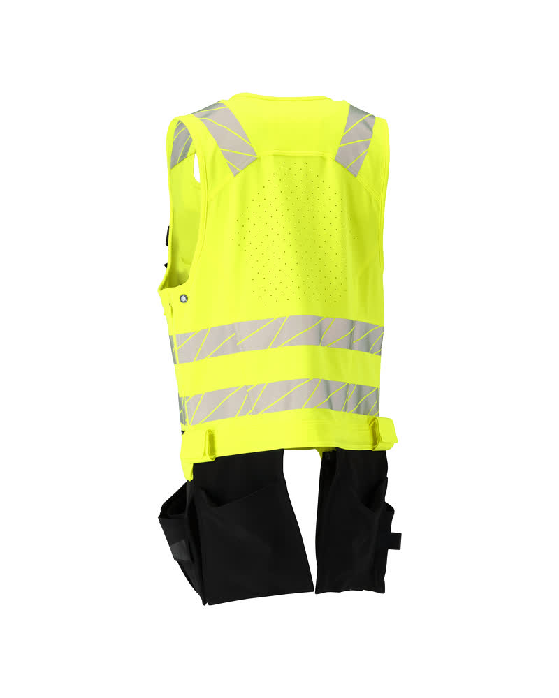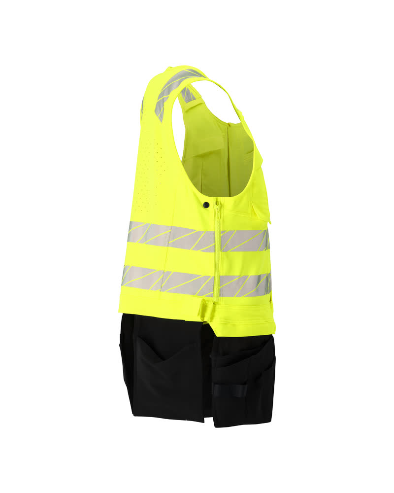 Tissu fluorescent avec bandes rétroréfléchissantes. Offre une finition hydrofuge. Tissu ultimate stretch de poids léger et résistant. Fermeture zippée. Porte-badge amovible. Poche poitrine. Poche téléphone avec rabat sur la poitrine. Deux poches flottantes amovibles à l'avant et deux poches flottantes à l'arrière. Poches flottantes à l'arrière repliables à l'aide de boutons. Poche flottante interne fermeture avec boutons-pression. Poche flottante avec poche téléphone doublée et fermeture aimantée. Poches flottantes avec renforts en Kevlar® et CORDURA®. Patte-outils de chaque côté de la taille. Ajustable par un zip de chaque côté. Ventilation dans le dos. Ventilations zippées sur les côtés. Trou pour harnais antichute.