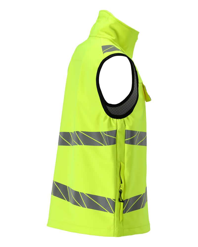 Tissu fluorescent avec bandes rétroréfléchissantes. Coupe-vent, hydrofuge et permettant au corps de respirer. Coupe moderne, plus près du corps mais offrant une excellente liberté de mouvement. Col montant. Fermeture zippée et double rabat coupe-vent. Poche poitrine zippée. Poches latérales zippées. Poches intérieures. Taille ajustable à l'aide d'un cordon élastique de serrage. Porte-badge amovible.