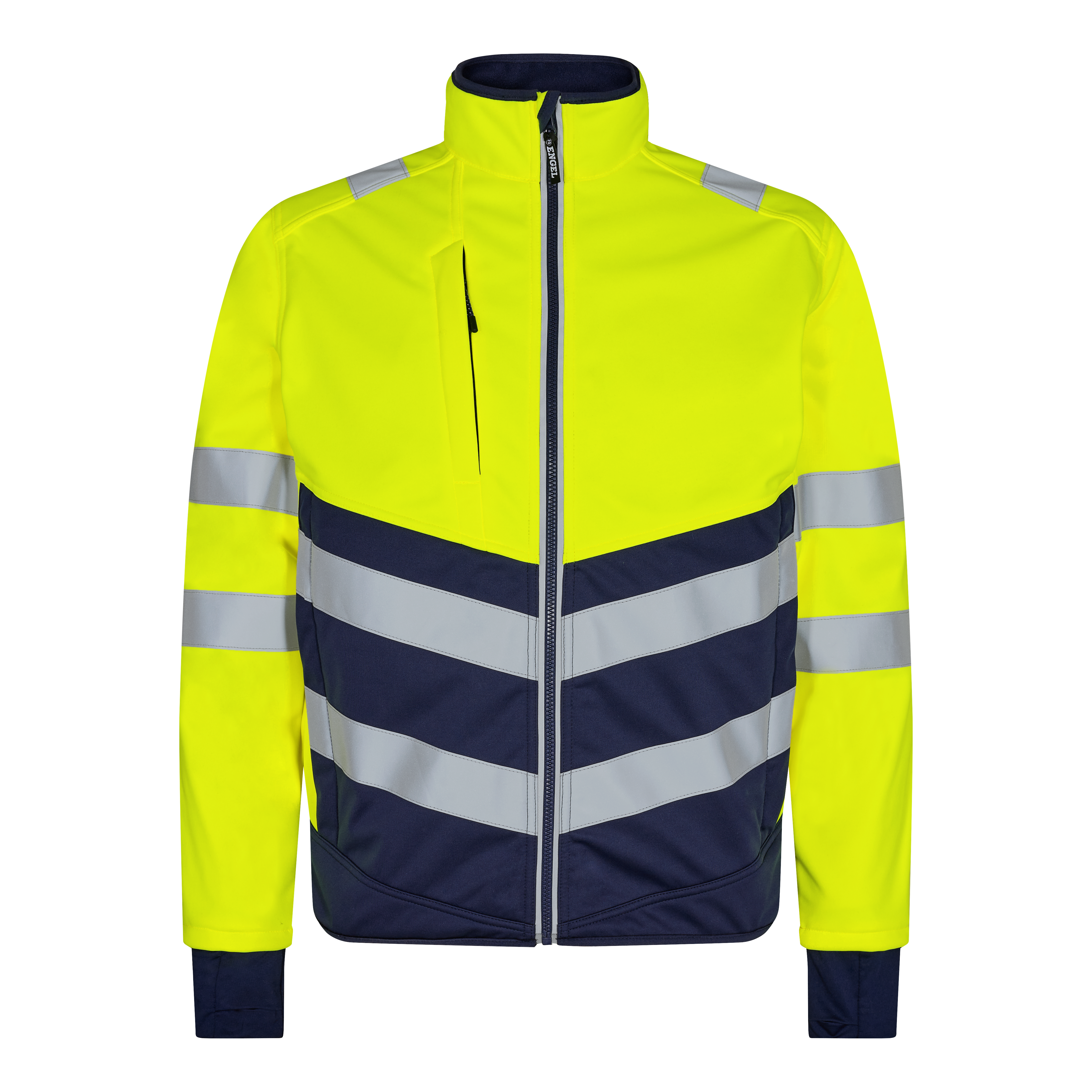 Blouson softshell fluorescente fonctionnelle et délicieusement élégante de coupe moderne, qui résiste au vent et à l’eau. Cette blouson est en polaire à l’intérieur et sur le col, ce qui la rend douce et confortable sur la peau. Bonne qualité extensible pour apporter confort et mobilité. Fermeture éclair réfléchissante sur le devant. Deux grandes poches latérales ainsi qu’une poche poitrine. Toutes avec des fermetures à glissière. Deux poches intérieures à fermeture velcro. La veste a un resserrage élastique en bas. Dans les manches, il y a un coupe-vent supplémentaire en tissu élastique. Le coupe-vent a un passe pouce et peut être retiré au-dessus de la main pour mieux se protéger du froid. Des bandes réfléchissantes sur les épaules, ainsi qu’autour des bras et du corps. Classe de vêtement 2. Testé après 25 lavages.