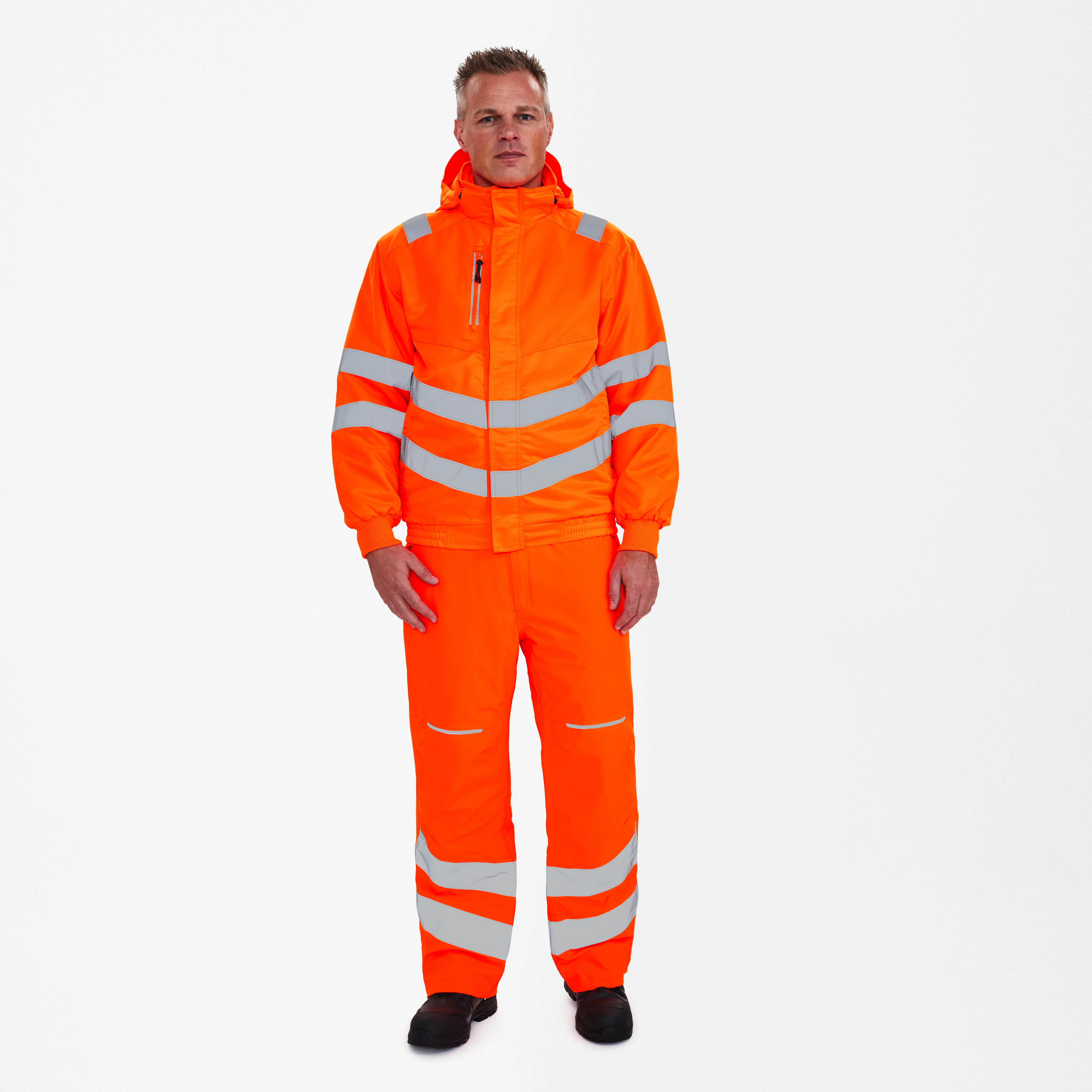 Blouson aviateur fluorescent, imperméable et coupe-vent, coupe moderne. Col haut avec polaire à l’intérieur. Double fermeture postérieure avec fermeture à glissière et fermeture velcro sur le devant. Deux spacieuses poches latérales et une poche poitrine avec une fermeture à glissière. Deux poches intérieures, dont une avec fermeture à glissière. Capuche amovible avec possibilité de réglage et espace pour le casque de travail. Élastique en bas et côtes au poignet. Fermeture à glissière pour y appliquer une impression/broderie. Bandes réfléchissantes sur les épaules, ainsi qu’autour des bras et du corps. Catégorie de vêtement 3. Testé après 50 lavages.