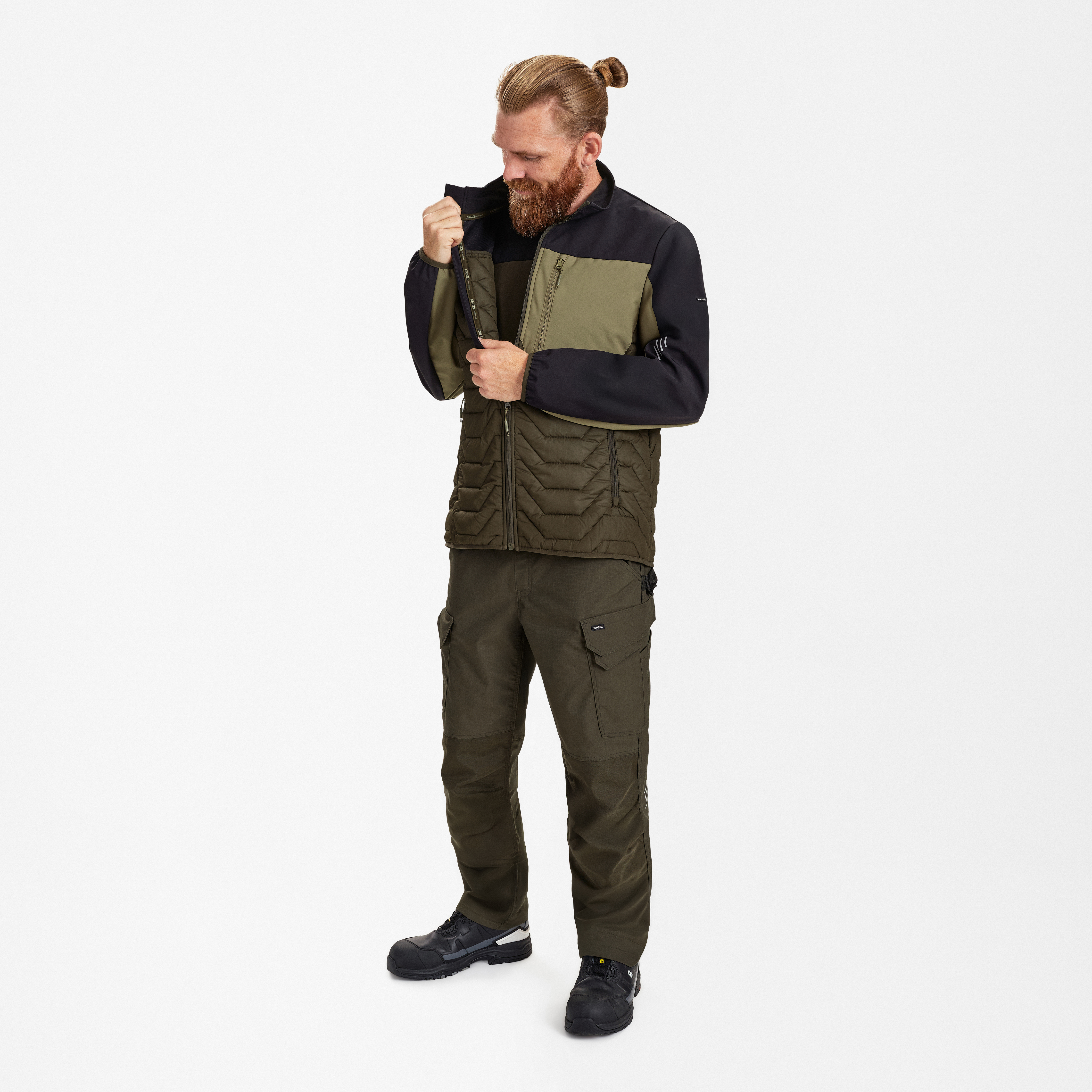 la priorité N° 1 de la conception de cette veste élégante est une parfaite combinaison de fonctionnalité et de flexibilité. Le design légèrement matelassé combiné avec le softshell extensible sur les manches et le dos offre une dextérité accrue et un ajustement optimal. Pour un confort accru, la veste dispose d'un col intérieur doux et coupe-vent. La veste est dotée d'une fermeture éclair pratique à l'avant et de plusieurs poches spacieuses, telles qu'une poche poitrine et deux poches latérales, toutes deux avec fermetures éclair. La finition élastique sur les manches et le bas assure un ajustement confortable, tandis que le réglage en velcro au bas des manches permet de personnaliser facilement la veste. L'impression réfléchissante sur le col et les manches augmente la visibilité. La veste est également conçue pour permettre le marquage de l'entreprise.