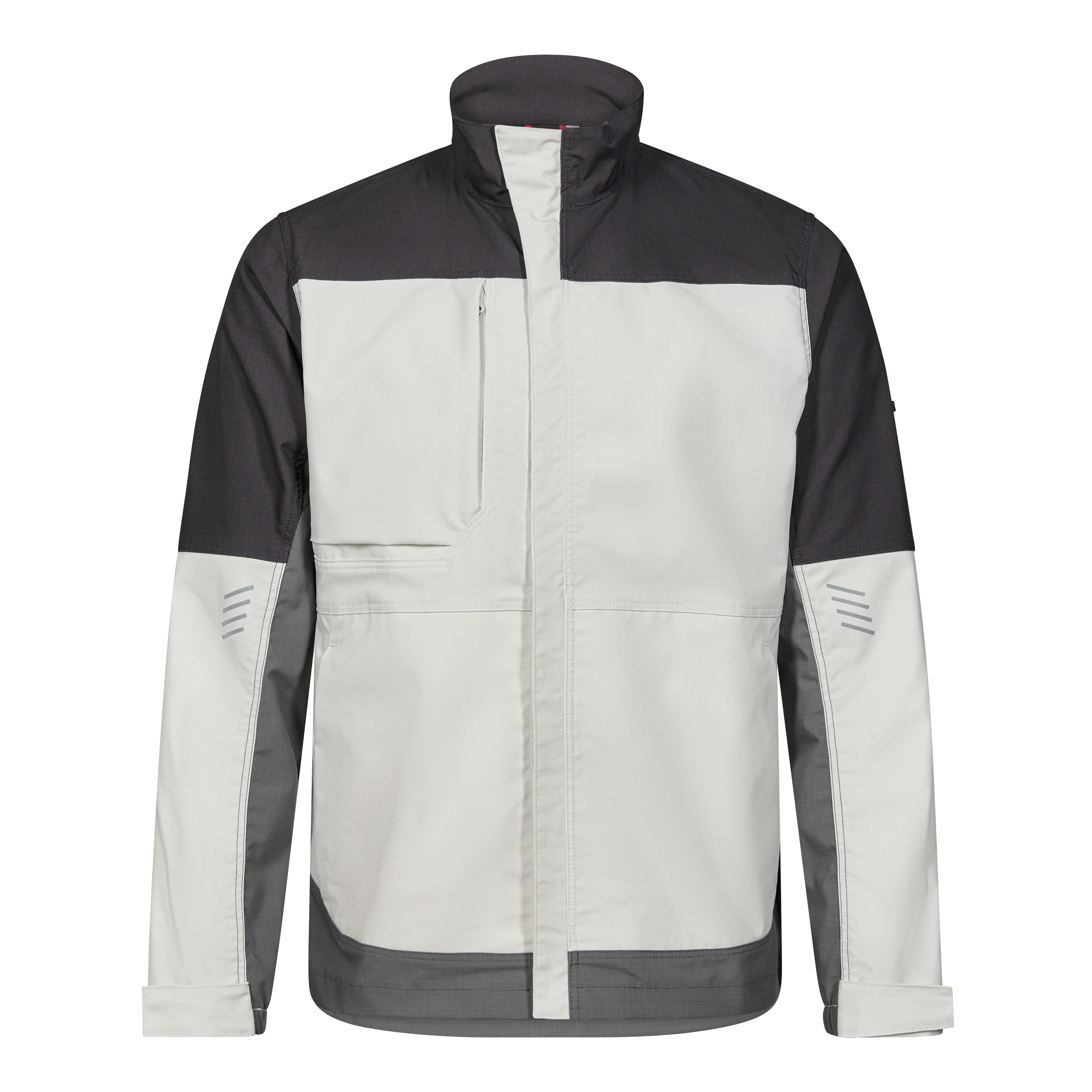 la priorité N° 1 de la conception de cette veste de travail est la fonctionnalité,la durabilité et le confort, ce qui la rend idéale pour des conditions de travail exigeantes. Elle est fabriquée en tissu Ripstop avec stretch dans deux directions, garantissant à la fois flexibilité et résistance à l'abrasion. La fermeture éclair frontale dissimulée et un rabat étroit protègent contre les éraflures. La veste dispose de nombreuses poches pratiques, telles qu'une poche poitrine spacieuse avec fermeture éclair et deux poches latérales, qui possèdent également des fermetures éclair pour un rangement sécurisé. Pour assurer un ajustement optimal, la veste possède des réglages élastiques et en velcro aux ouvertures des manches, permettant une personnalisation individuelle. Les impressions réfléchissantes sur les deux manches et dans le dos augmentent la visibilité. La pièce arrière allongée offre une protection supplémentaire pour le bas du dos, avantageuse dans des environnements froids ou venteux. Un anneau en D dans la poche droite facilite l'attachement de cartes d'identité, par exemple. La veste offre un espace suffisant pour le marquage de l'entreprise. De plus, la veste est adaptée au lavage industriel, garantissant un entretien facile même avec une utilisation fréquente. Nombre de bouteilles en plastique recyclées : 12.
