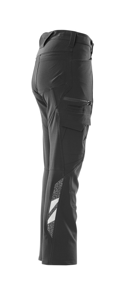 Coupe femme DIAMOND. Offre une finition hydrofuge. Tissu ultimate stretch de poids léger et résistant. Tissu quasiment insensible au contact de la peau grâce aux poches intégrées dans le design. Coutures doubles sur les jambes et dans l'entrejambe. Taille basse. Jambes ergonomiques. Passants de ceinture. Fermeture zippée. Poches latérales. Poches arrière. Poche cuisse avec compartiment téléphone - rabat avec bouton-pression invisible et un porte badge. Porte-badge amovible. Poche cuisse avec poche mètre pliant. Avec motifs imprimés et bandes rétroréfléchissantes.