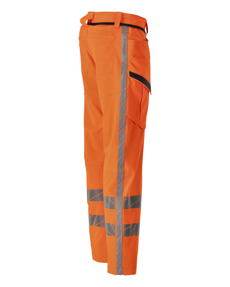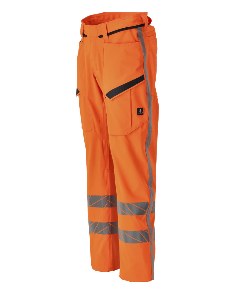Tissu fluorescent avec bandes rétroréfléchissantes horizontales et verticales. Tissu ultimate stretch de poids léger et résistant. Le polyester est conçu à partir de matières recyclées. Offre une finition hydrofuge. Coutures doubles sur les jambes et dans l'entrejambe. Fermeture bouton dissimulée. Braguette zippée. Compatible avec les poches flottantes dotées du Click Pocket System. Passants de ceinture. Poches latérales. Poches arrière renforcées. Poches à rabat à l'avant des cuisses. Longueur d'entrejambe pouvant être rallongée de 3 cm en défaisant la couture rouge à l'intérieur vers le pied.