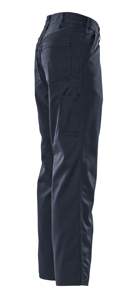 Coutures triples sur les jambes et dans l'entrejambe. Passants de ceinture. Braguette zippée. Poches latérales. Poches arrière renforcées. Patte-marteau. Poche cuisse sous rabat fermée par bande auto-agrippante. Poche mètre pliant renforcée.