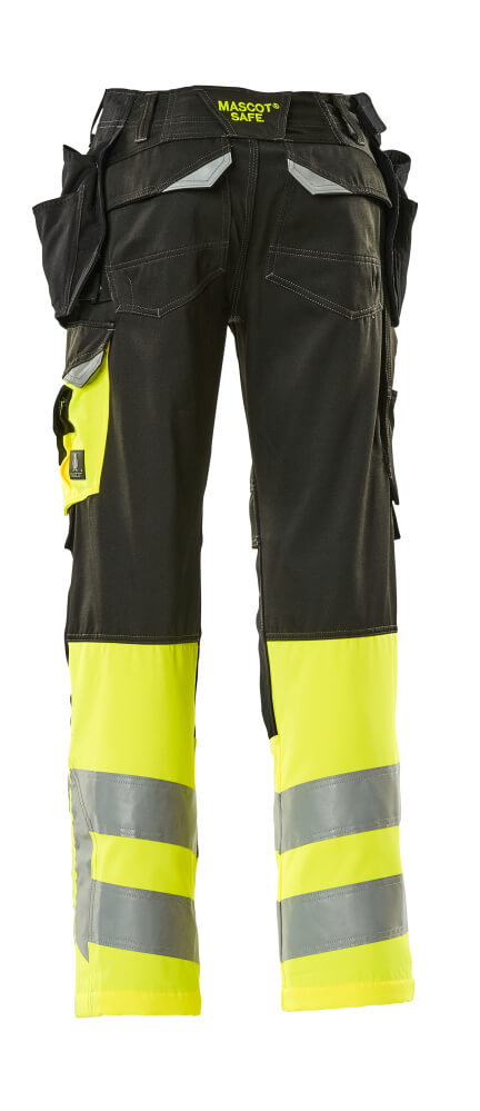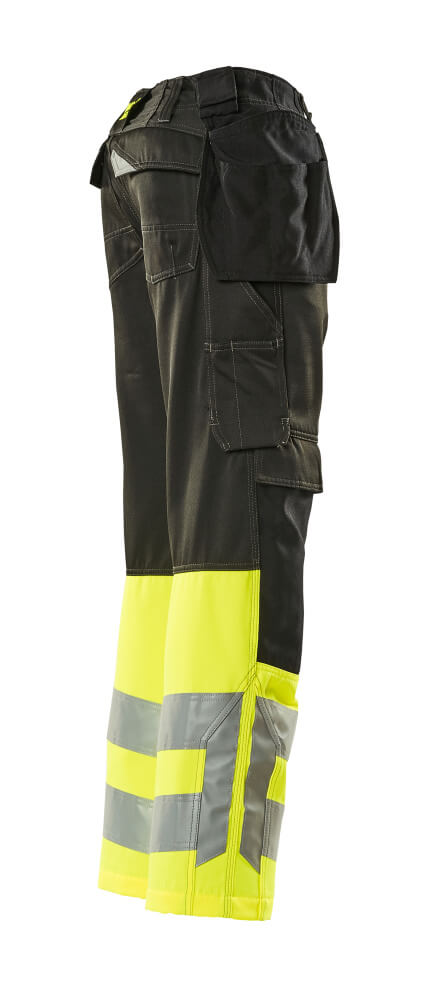 Couleur fluorescente et contrastée avec bandes rétroréfléchissantes. Le traitement de surface rend votre vêtement moins salissant. Bicolore. Coutures triples sur les jambes et dans l'entrejambe. Taille basse et ceinture façonnée. Jambes ergonomiques. Poches flottantes réglables en CORDURA® avec des espaces supplémentaires pour les outils. Passants de ceinture. Braguette zippée. Anneau en D. Patte-outils à la ceinture. Poches latérales. Poches arrière renforcées, sous rabat avec boutons-pression invisibles. Patte-marteau réglable. Poche cuisse renforcée et dotée de poches supplémentaires - une poche téléphone intérieure ainsi qu'une extérieure sous rabat avec fermeture aimantée. Poche mètre-pliant avec ouverture renforcée en CORDURA®. Poches genouillères réglables en CORDURA® solide (500 D) sous rabat avec insertion des genouillères par le haut. Bandes rétroréfléchissantes verticales sur le côté des jambes pour une meilleure visibilité. Longueur d'entrejambe pouvant être rallongée de 3 cm en défaisant la couture rouge à l'intérieur vers le pied. Double certification compatible avec le modèle de genouillères large selon la norme EN 14404-3.