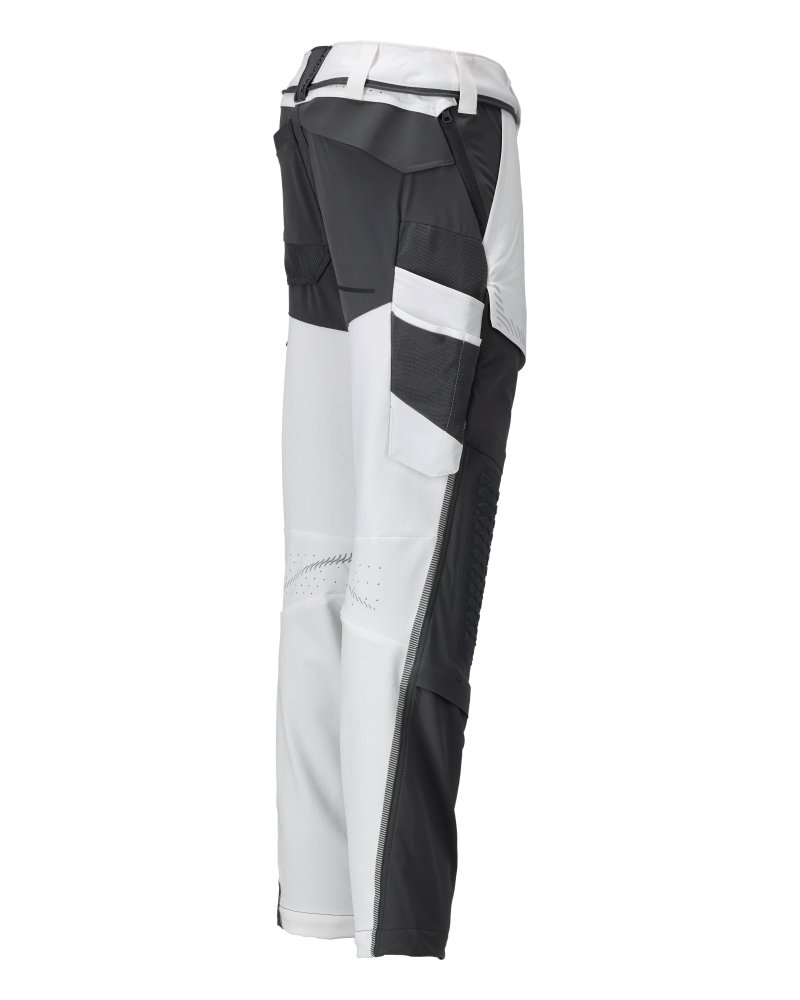 Conçu spécifiquement pour le métier de peintre, avec par ex. des poches spéciales. Tissu ultimate stretch de poids léger et ultrarésistant. Offre une finition hydrofuge. Compatible avec les poches flottantes dotées du Click Pocket System. Coutures doubles sur les jambes et triples dans l'entrejambe. Jambes ergonomiques. Perforations à l'arrière du genou et de la taille pour une bonne ventilation. Passants de ceinture. Braguette zippée. Filet de ventilation sur les côtés - ouverture zippée. Poches latérales. Poches arrière, dont une avec rabat. Poche ouverte sur la cuisse avec une petite poche où glisser un pinceau par exemple. Poche cuisse incluant une poche téléphone à fermeture aimantée et un porte badge. Porte-badge amovible. Poches à rabat à l'avant des cuisses. Poches genouillères ajustables en CORDURA® super robuste, avec ventilation. Réglage facile de la hauteur de la poche genouillère. Longueur d'entrejambe pouvant être rallongée de 3 cm en défaisant la couture rouge à l'intérieur vers le pied. Effets rétroréfléchissants. Double certification compatible avec le modèle de genouillères large selon la norme EN 14404-3.