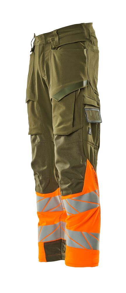 Couleur fluorescente et contrastée avec bandes rétroréfléchissantes. Offre une finition hydrofuge. Bicolore. Tissu ultimate stretch de poids léger et résistant. Coutures doubles sur les jambes et dans l'entrejambe. Fermeture bouton dissimulée. Jambes ergonomiques. Passants de ceinture. Braguette zippée. Poches latérales. Poches arrière renforcées. Patte-marteau cachée du côté droit. Compatible avec les poches flottantes 19450-126, qui se fixent par boutons. Poche mètre pliant renforcée en Kevlar®. Poches à rabat à l'avant des cuisses. Poches genouillères réglables en CORDURA® particulièrement solides (1000 D). Réglage facile de la hauteur de la poche genouillère. Poche cuisse avec poche pour téléphone doublée, bouton-pression caché et porte-badge intégré. Porte-badge amovible. Zip de ventilation vertical à l'arrière des cuisses. Avec effets d'impression. Longueur d'entrejambe pouvant être rallongée de 3 cm en défaisant la couture rouge à l'intérieur vers le pied. Double certification compatible avec le modèle de genouillères large selon la norme EN 14404-3.