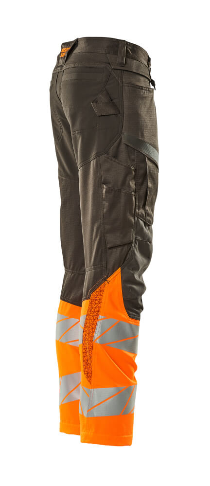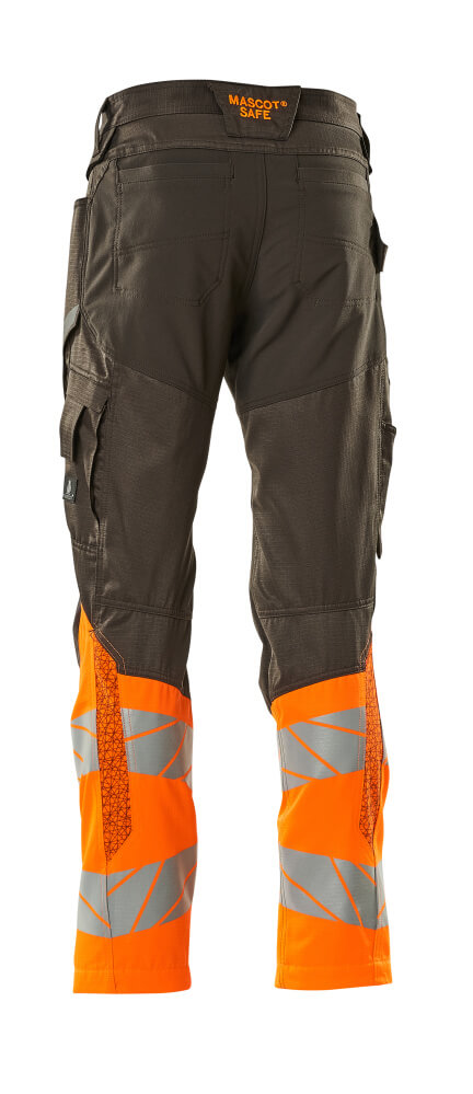 Couleur fluorescente et contrastée avec bandes rétroréfléchissantes. Bicolore. Certaines parties du vêtement sont en tissu stretch. Combinaison de tissu léger en qualité 236 et de tissu ULTIMATE STRETCH en qualité 511. Coutures doubles sur les jambes et dans l'entrejambe. Fermeture bouton dissimulée. Jambes ergonomiques. Passants de ceinture. Anneau en D. Braguette zippée. Poches latérales. Poches arrière renforcées. Patte-marteau cachée du côté droit. Poche mètre pliant renforcée. Poches à rabat à l'avant des cuisses. Poches genouillères réglables en CORDURA® solide (500 D). Réglage facile de la hauteur de la poche genouillère. Poche cuisse avec compartiment téléphone - rabat avec boutons-pression non visibles/recouverts. Avec effets d'impression. Compatible avec les poches flottantes 19450-126, qui se fixent par boutons. Longueur d'entrejambe pouvant être rallongée de 3 cm en défaisant la couture rouge à l'intérieur vers le pied. Double certification compatible avec le modèle de genouillères large selon la norme EN 14404-3.