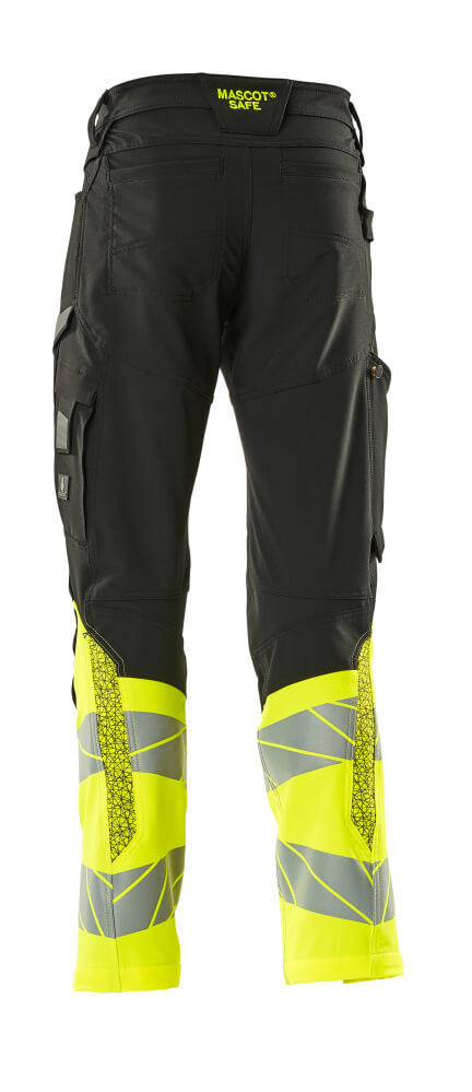 Couleur fluorescente et contrastée avec bandes rétroréfléchissantes. Offre une finition hydrofuge. Bicolore. Tissu ultimate stretch de poids léger et résistant. Coutures doubles sur les jambes et dans l'entrejambe. Fermeture bouton dissimulée. Jambes ergonomiques. Passants de ceinture. Anneau en D. Braguette zippée. Poches latérales. Poches arrière renforcées. Patte-marteau réglable. Poche mètre pliant renforcée. Bouton attache couteau. Poches à rabat à l'avant des cuisses. Poches genouillères réglables en CORDURA® solide (500 D). Poche cuisse avec compartiment téléphone - rabat avec fermeture par bande auto-agrippante. Avec effets d'impression. Compatible avec les poches flottantes 19450-126, qui se fixent par boutons. Longueur d'entrejambe pouvant être rallongée de 3 cm en défaisant la couture rouge à l'intérieur vers le pied. Double certification compatible avec le modèle de genouillères large selon la norme EN 14404-3.