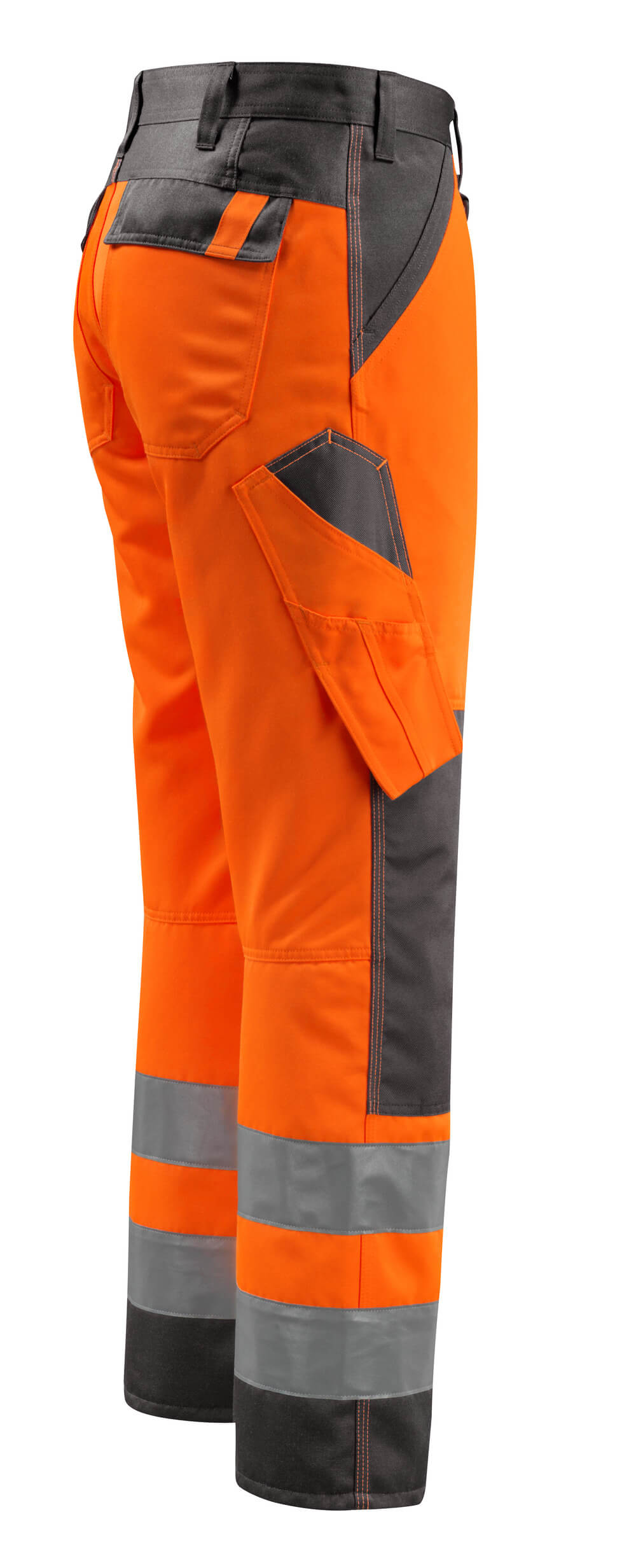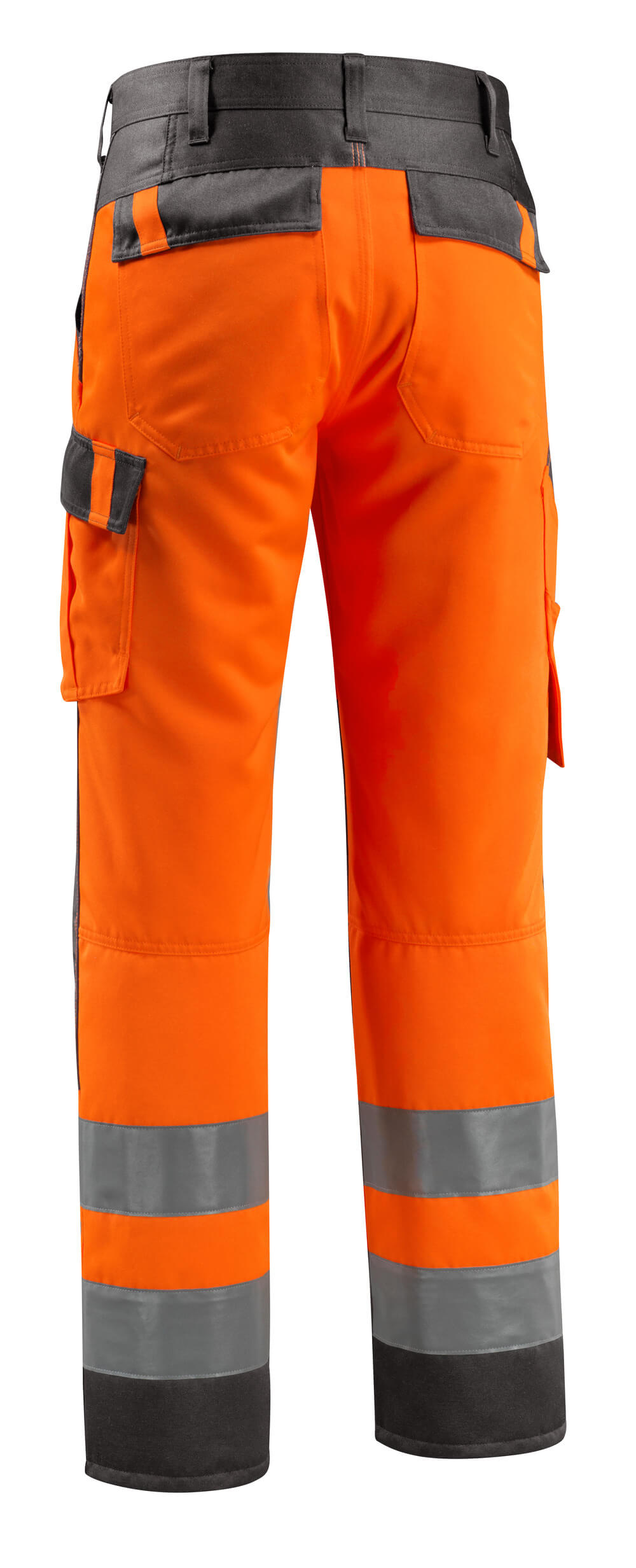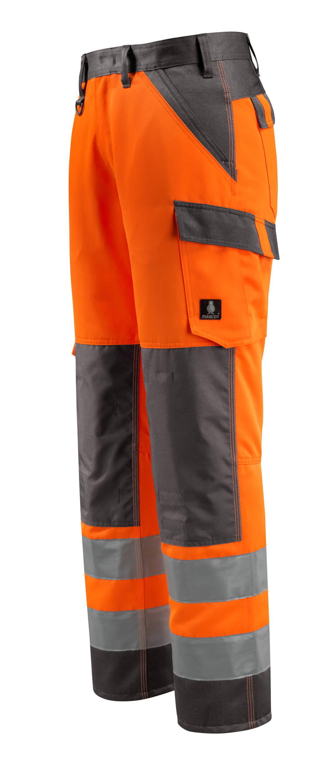 Tissu fluorescent avec bandes rétroréfléchissantes. Bicolore. Coutures triples sur les jambes et dans l'entrejambe. Jambes ergonomiques. Braguette zippée. Anneau en D. Poches latérales. Poches arrière sous rabat. Poche cuisse sous rabat avec boutons-pression non visibles/recouverts. Poche mètre-pliant avec ouverture renforcée. Poches genouillères reglables en polyester. Double certification compatible avec le modèle de genouillères large selon la norme EN 14404-3.