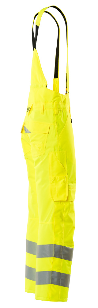 Fluorescent(e) avec bandes rétroréfléchissantes transversales en biais. Imperméable, coupe-vent et permettant au corps de respirer. Coutures thermocollées. Doublure matelassée. La taille est plus haute à l'arrière pour une meilleure protection contre le froid. Passants de ceinture. Anneau en D. Braguette zippée. Poches latérales. Poches arrière renforcées, sous rabat avec boutons-pression invisibles. Poche cuisse renforcée et dotée de poches supplémentaires - une poche téléphone intérieure ainsi qu'une extérieure sous rabat avec fermeture aimantée. Poche mètre pliant. Poches genouillères - sous rabat, réglables et avec insertion des genouillères par le haut. Jupe à neige intérieure au niveau de la jambe. Zip sous rabat coupe-vent sur le côté extérieur des jambes. Double certification compatible avec le modèle de genouillères large selon la norme EN 14404-3.