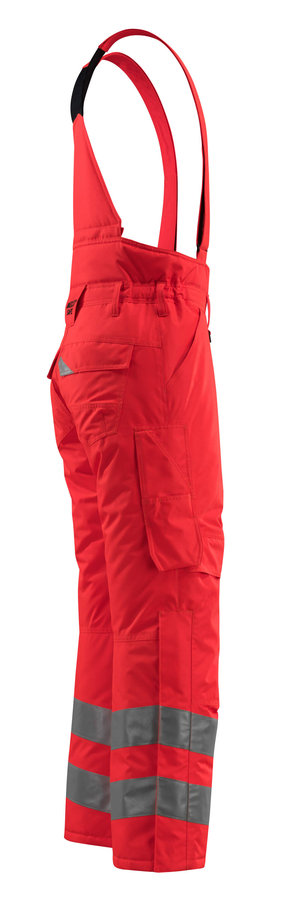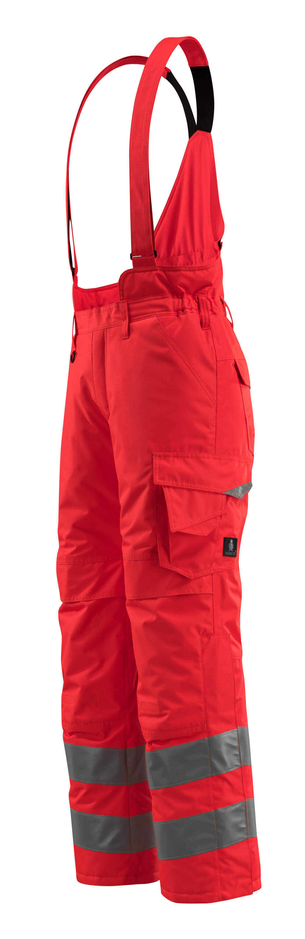 Fluorescent(e) avec bandes rétroréfléchissantes transversales en biais. Imperméable, coupe-vent et permettant au corps de respirer. Coutures thermocollées. Doublure matelassée. La taille est plus haute à l'arrière pour une meilleure protection contre le froid. Passants de ceinture. Anneau en D. Braguette zippée. Poches latérales. Poches arrière renforcées, sous rabat avec boutons-pression invisibles. Poche cuisse renforcée et dotée de poches supplémentaires - une poche téléphone intérieure ainsi qu'une extérieure sous rabat avec fermeture aimantée. Poche mètre pliant. Poches genouillères - sous rabat, réglables et avec insertion des genouillères par le haut. Jupe à neige intérieure au niveau de la jambe. Zip sous rabat coupe-vent sur le côté extérieur des jambes. Double certification compatible avec le modèle de genouillères large selon la norme EN 14404-3.
