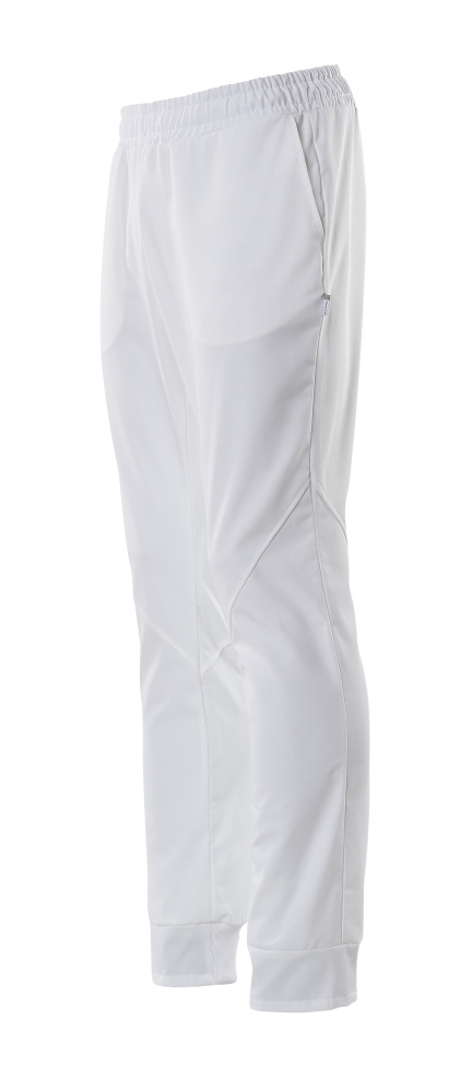 Elastique et cordon de serrage à la taille. Poches latérales avec fermeture bouton-pression non visible/recouvert. Boutons-pression métalliques. Maille côtelée sur les chevilles. Marquage de couleur pour chaque taille. Emplacements pour marquage du vêtement, puce HF et puce UHF. Le produit est résistant au lavage industriel.