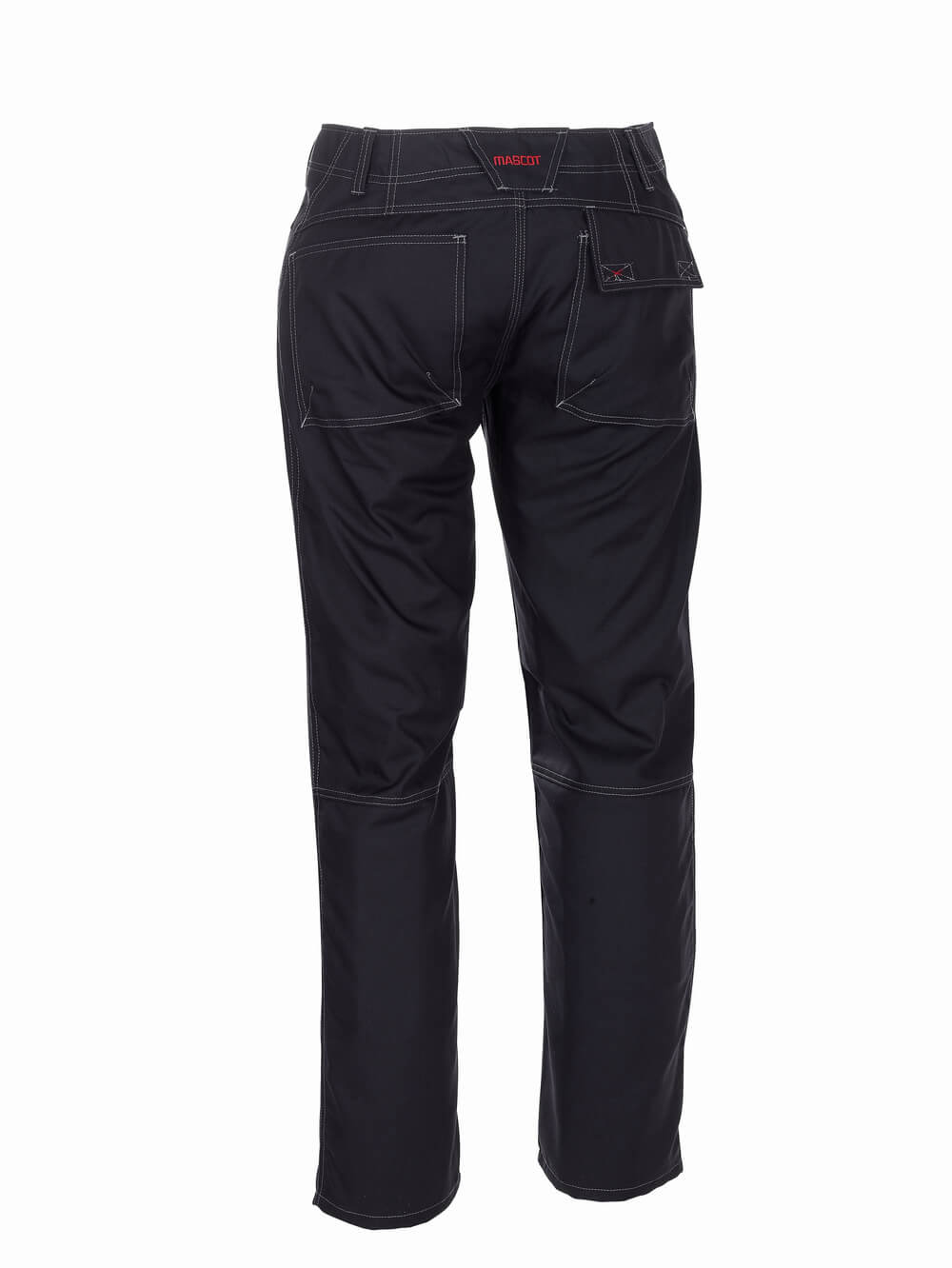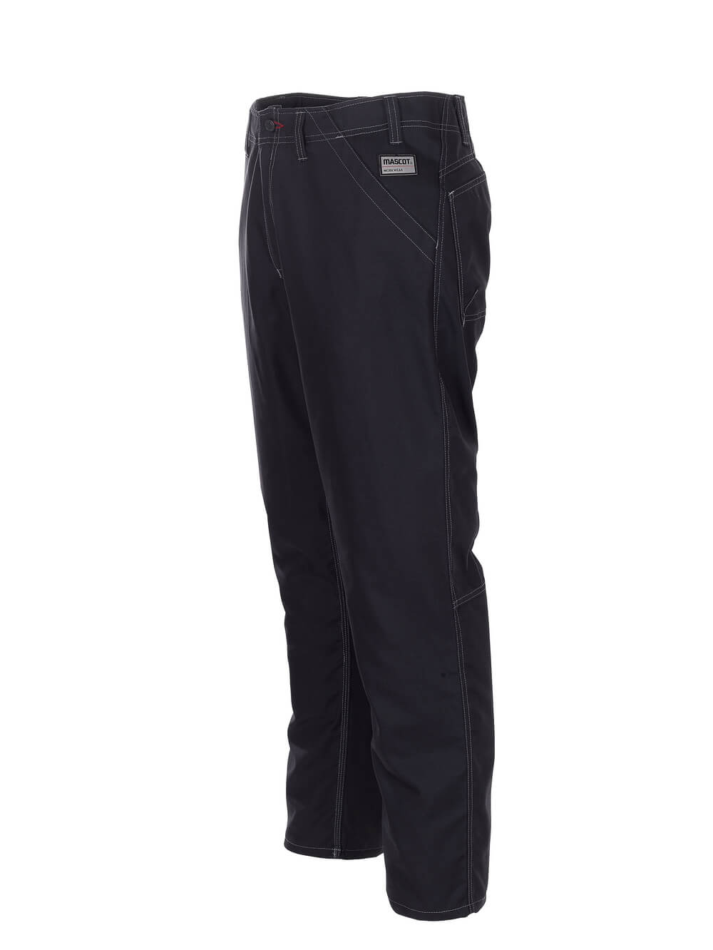 Coutures doubles sur les jambes et triples dans l'entrejambe. Taille basse et ceinture façonnée. Jambes ergonomiques. Passants de ceinture. Braguette zippée. Poches latérales. Poches arrière, dont une avec fermeture par bande auto-agrippante sous rabat. Discrets détails (rouges) sur certaines parties du produit.