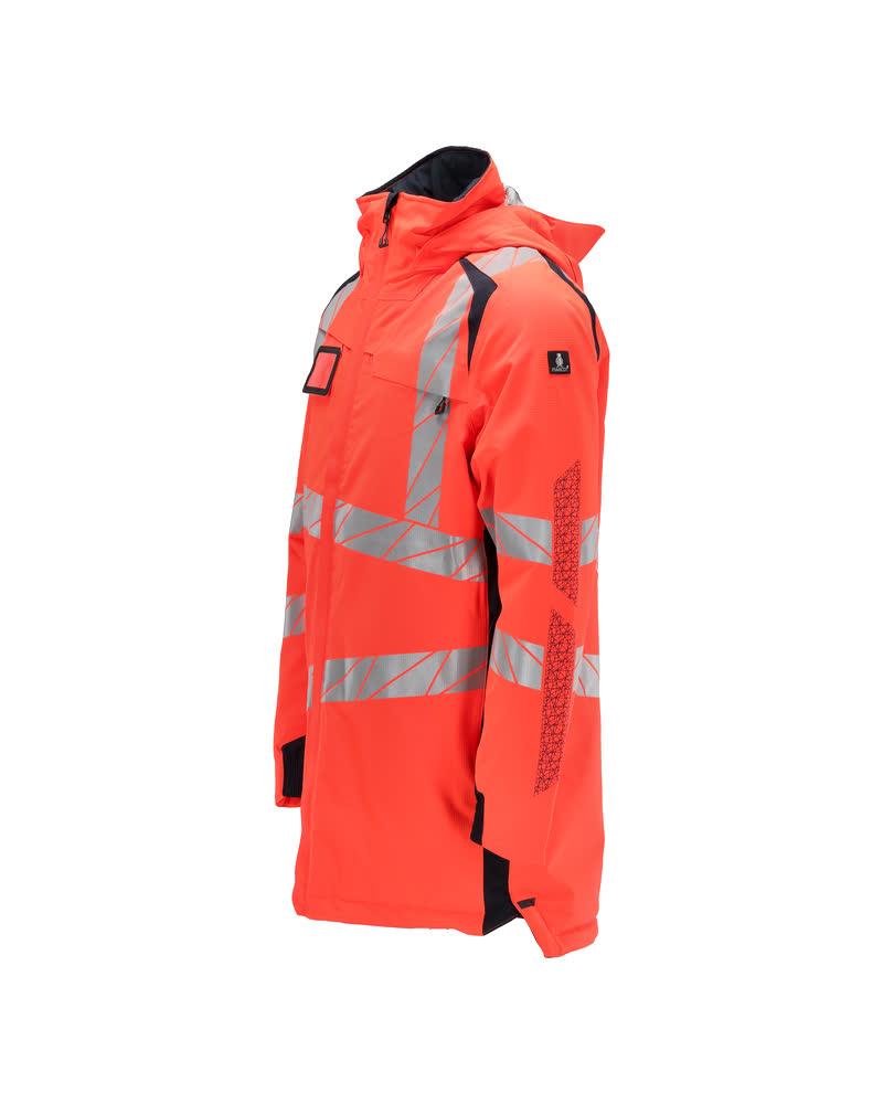 Fluorescent(e) avec bandes rétroréfléchissantes transversales, verticales et en biais. Extrêmement respirant, tout en étant imperméable et coupe-vent. Avec CLIMASCOT® Lightweight Insulation. Bicolore. Coutures thermocollées. Capuche amovible, avec doublure et cordon élastique de serrage. Fermeture zippée et double rabat coupe-vent. Poches intérieures - dont deux zippées et une ouverte en filet. Porte-badge amovible. Poche poitrine avec fermeture zippée étanche. Poches latérales avec fermeture zippée étanche. Col montant. Bord-côte intérieur dans le bas avant de la veste. Elastique aux poignets. Zip intérieur au bas du dos permettant la réalisation d'impressions/broderies. Avec effets d'impression.