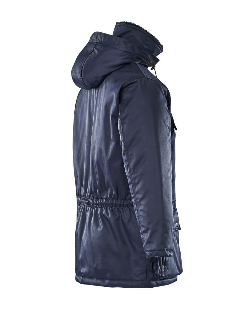 Déperlant(e). Doublure matelassée. Capuche amovible, avec doublure et cordon élastique de serrage. Col en fourrure synthétique. Fermeture zippée double curseur avec rabat coupe-vent fermé par boutons-pression. Poches poitrine sous rabat et avec boutons-pression. Anneau en D. Poches avec soufflet, sous rabat, avec poches supplémentaires superposées. Poche intérieure zippée. Taille réglable. Poche manche zippée. Poches stylo. Poignets en maille côtelée dissimulés à l'intérieur des manches.