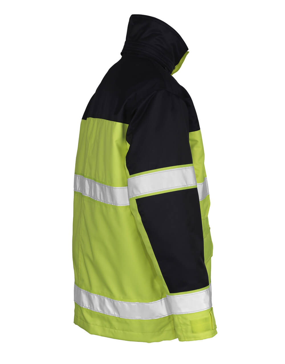 Tissu fluorescent avec bandes rétroréfléchissantes. Bicolore. Imperméable, coupe-vent et permettant au corps de respirer. Coutures thermocollées. Doublure matelassée amovible. Fermeture zippée double curseur, double rabat coupe-vent et boutons-pression invisibles. Poche zippée sous le rabat coupe-vent. Poches poitrine zippées. Anneau en D. Poches latérales avec fermeture bouton-pression cachée sous rabat. Poignets en maille côtelée dissimulés à l'intérieur des manches. Taille ajustable à l'aide d'un cordon élastique de serrage. Se complète astucieusement avec la capuche 05114-880 (voir MASCOT® COMPLETE).