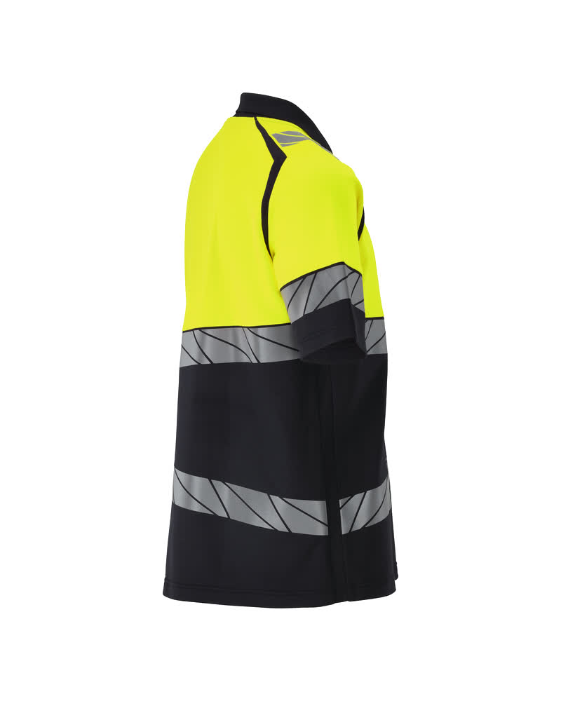 Premium. Fluorescent(e) avec bandes rétroréfléchissantes transversales en biais. Bicolore. Coupe moderne. Intérieur confortable en coton et polyester stretch résistant à l'extérieur. Motif jacquard carré. Bandes rétroréfléchissantes stretch. Col en maille tricot. Patte avec boutons non visibles/recouverts. Bande de renfort sur les coutures au niveau de la nuque.