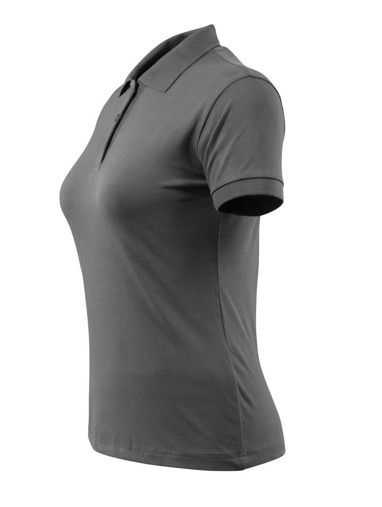 Basic. Coupe femme. Patte boutonnée. Maille côtelée sur le col et les manches. Bande de renfort sur les coutures au niveau de la nuque.