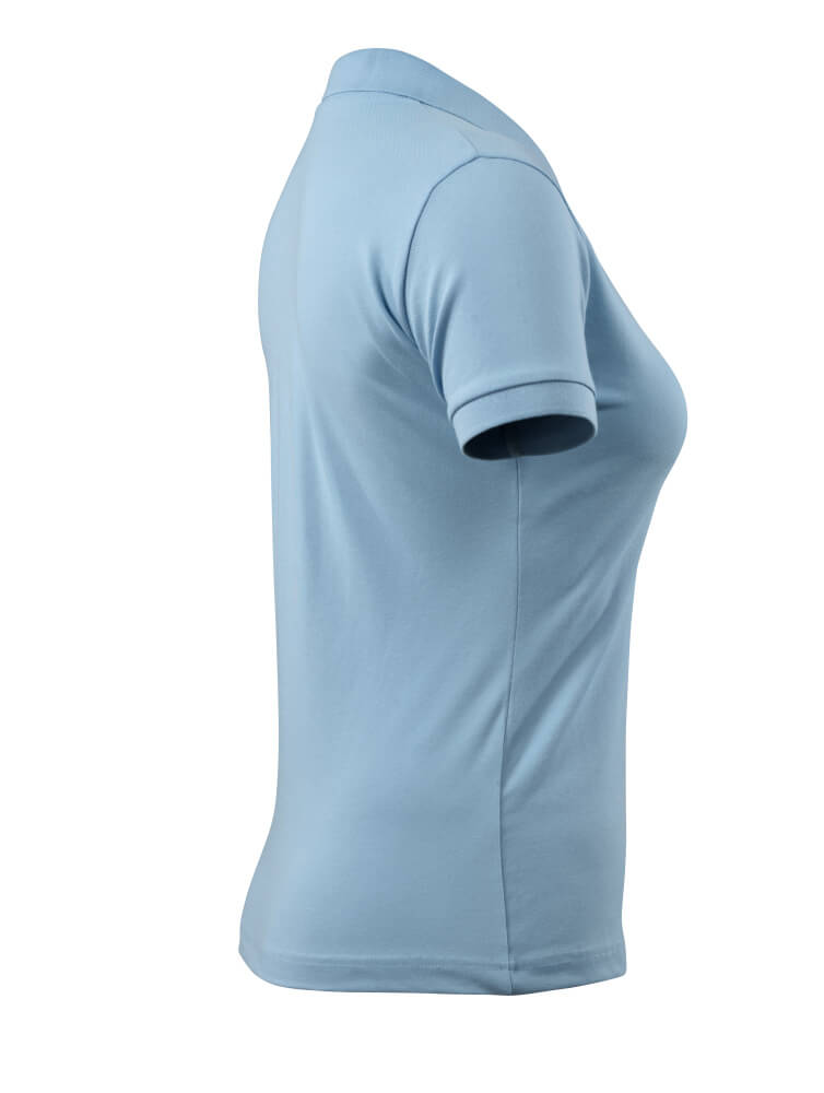Basic. Coupe femme. Patte boutonnée. Maille côtelée sur le col et les manches. Bande de renfort sur les coutures au niveau de la nuque.