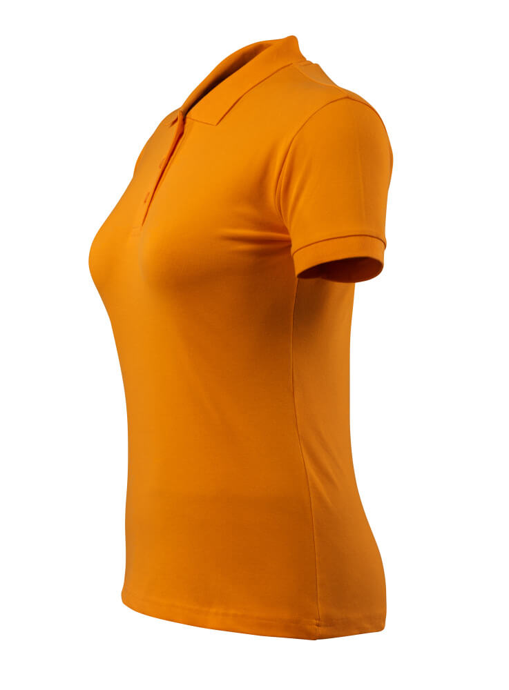 Basic. Coupe femme. Patte boutonnée. Maille côtelée sur le col et les manches. Bande de renfort sur les coutures au niveau de la nuque.