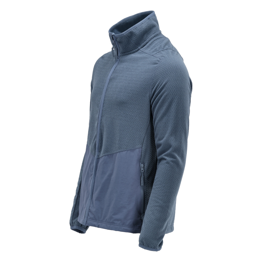 Coupe moderne. Fermeture zippée et rabat coupe-vent à l'intérieur. Poches latérales zippées. Poches intérieures. Bande élastique aux poignets.