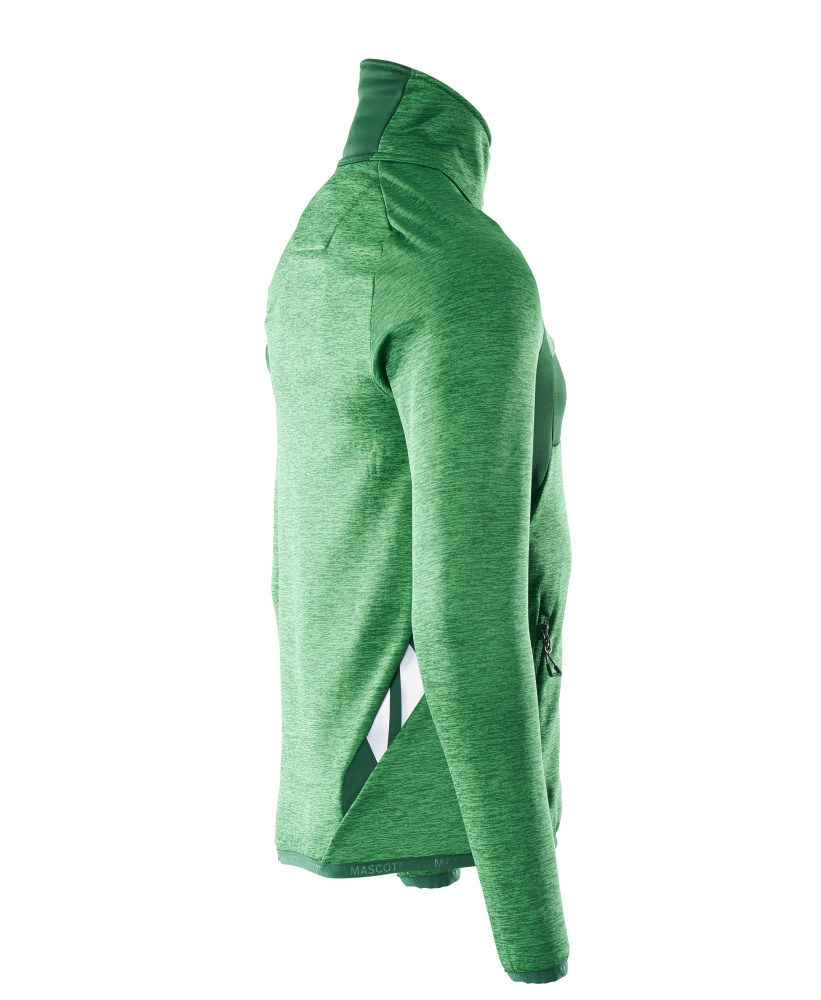 Coupe moderne, plus près du corps mais offrant une excellente liberté de mouvement. Col zippé sous rabat coupe-vent. Poche poitrine zippée. Poches latérales zippées. Bande élastique au niveau des poignets et du bord inférieur. Effets rétroréfléchissants.