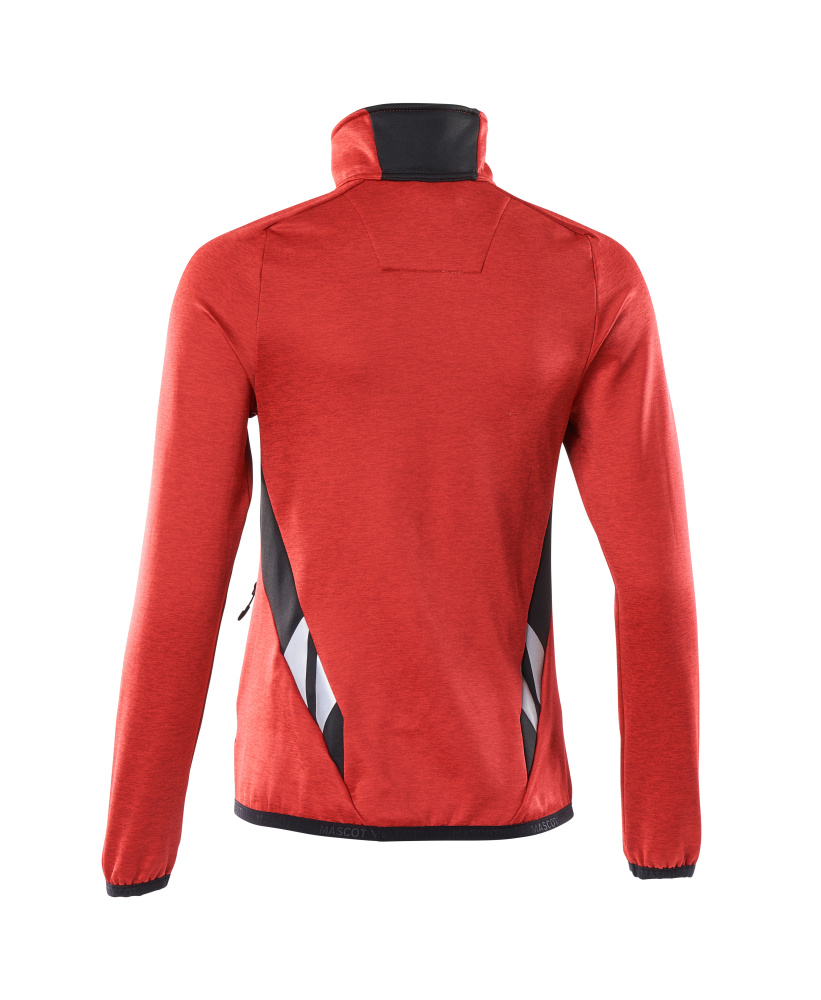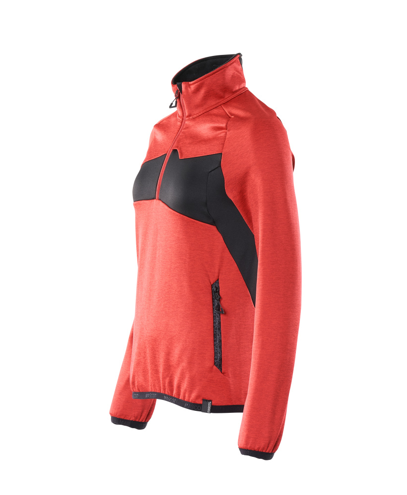 Coupe femme. Coupe moderne, plus près du corps mais offrant une excellente liberté de mouvement. Col zippé sous rabat coupe-vent. Poches latérales zippées. Bande élastique au niveau des poignets et du bord inférieur. Effets rétroréfléchissants.