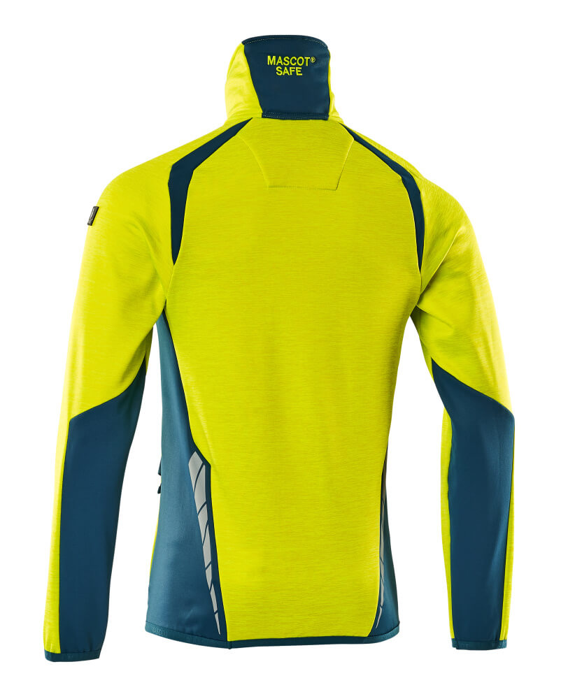 Coupe moderne, plus près du corps mais offrant une excellente liberté de mouvement. Col montant. Bicolore. Col zippé sous rabat coupe-vent. Poche poitrine zippée. Poches latérales zippées. Elastiques aux poignets et à la taille. Porte-badge amovible. Effets rétroréfléchissants.