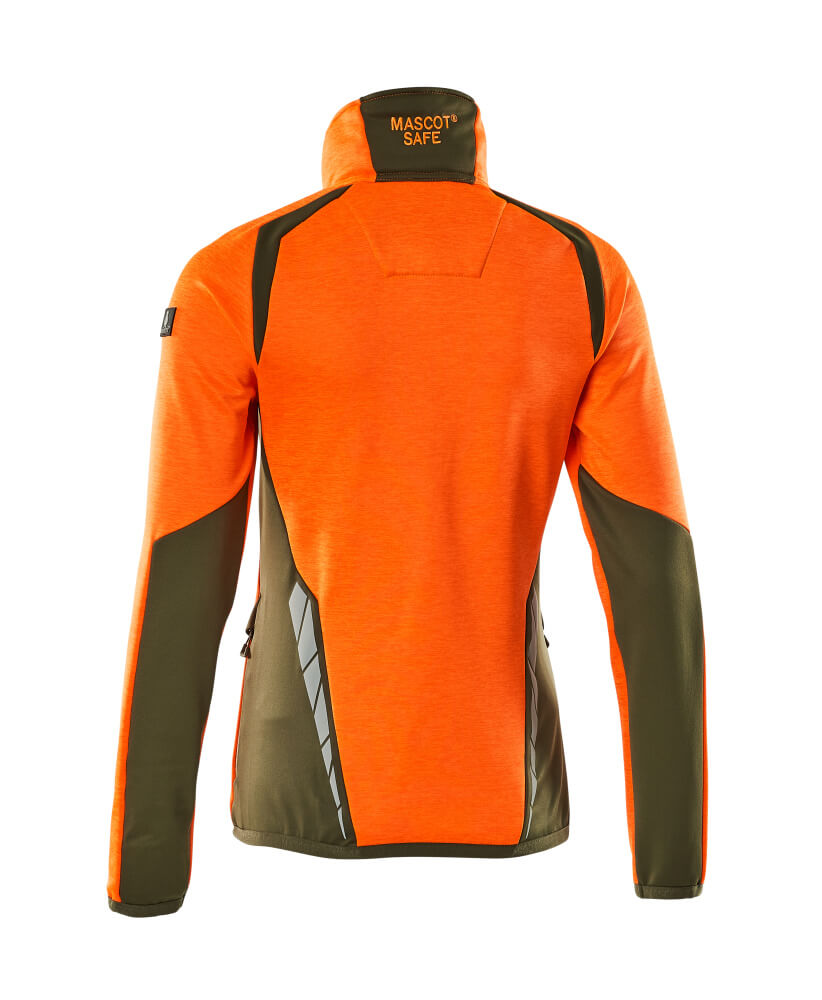 Coupe femme. Coupe moderne, plus près du corps mais offrant une excellente liberté de mouvement. Col montant. Bicolore. Fermeture zippée et rabat coupe-vent à l'intérieur. Poches latérales zippées. Poches intérieures. Elastiques aux poignets et à la taille. Porte-badge amovible. Effets rétroréfléchissants.