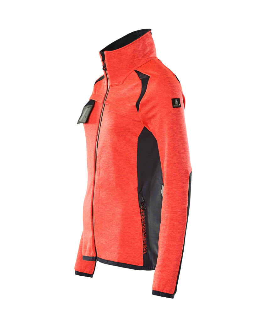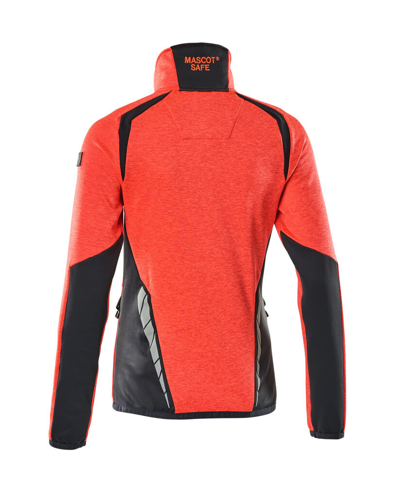 Coupe femme. Coupe moderne, plus près du corps mais offrant une excellente liberté de mouvement. Col montant. Bicolore. Fermeture zippée et rabat coupe-vent à l'intérieur. Poches latérales zippées. Poches intérieures. Elastiques aux poignets et à la taille. Porte-badge amovible. Effets rétroréfléchissants.