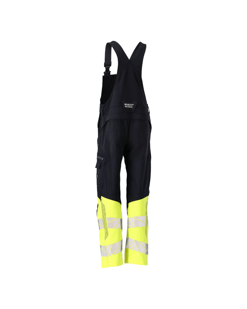 Bicolore. Couleur fluorescente et contrastée avec bandes rétroréfléchissantes. Antistatique, résistant(e) aux acides et ignifugé(e). Protège contre les arcs électriques. Certaines parties du vêtement sont en tissu stretch. Compatible avec les poches flottantes dotées du Click Pocket System. Coutures doubles sur les jambes et dans l'entrejambe. Jambes ergonomiques. Les bretelles sont réglables et dotées de boucles en plastique. Poche bavette avec sous rabat boutons-pression invisibles et poche pour téléphone. Passants de ceinture. Braguette zippée. Poches latérales. Poche mètre pliant sous rabat renforcée. Poche cuisse avec compartiment téléphone - rabat avec bouton-pression invisible et un porte badge. Poches arrière renforcées et rabat. Poches genouillères en CORDURA® - réglables. Réglage facile de la hauteur de la poche genouillère. Longueur d'entrejambe pouvant être rallongée de 3 cm en défaisant la couture rouge à l'intérieur vers le pied. Avec effets d'impression.