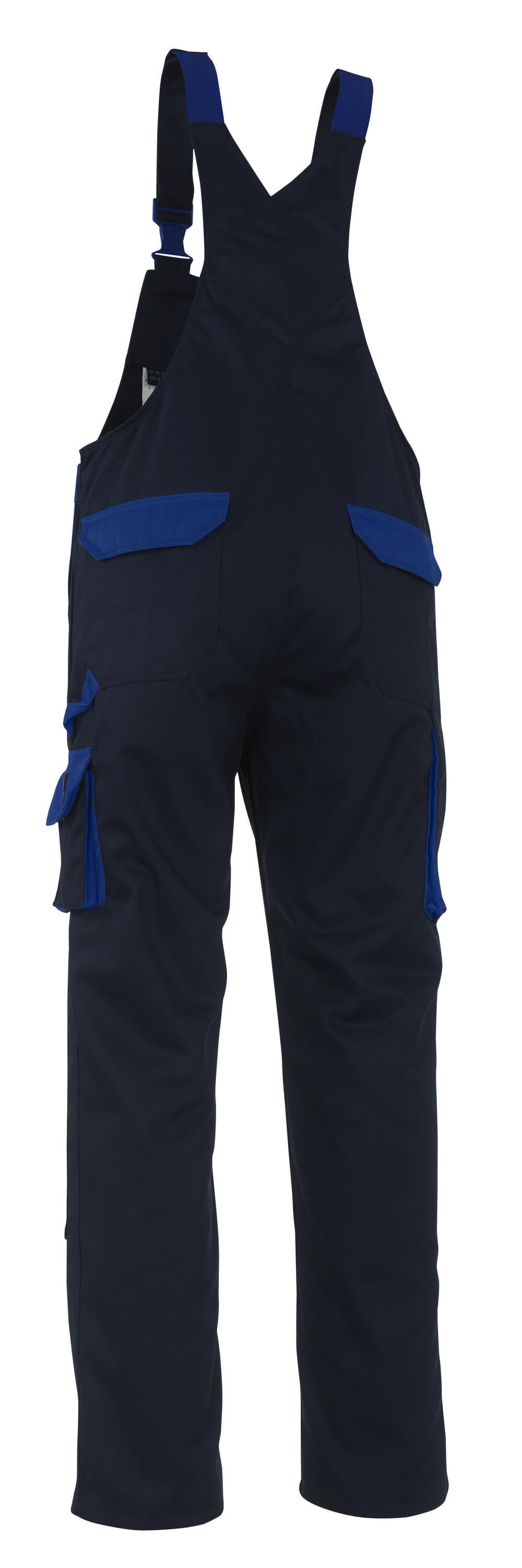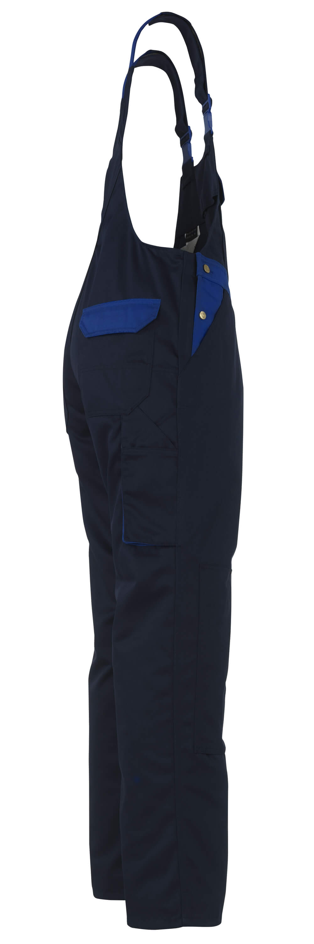 Bicolore. Coutures triples sur les jambes et dans l'entrejambe. Bretelles ajustables en tissu et court ruban élastique très résistant - boucles en plastique. Poche bavette sous rabat, avec poches stylo. Poche intérieure avec fermeture par bande auto-agrippante. Taille réglable. Poches latérales. Braguette zippée. Poches arrière renforcées, avec fermeture par bande auto-agrippante sous rabat. Patte-marteau réglable. Poche cuisse sous rabat fermée par bande auto-agrippante. Poche mètre pliant. Poches genouillères - réglables.