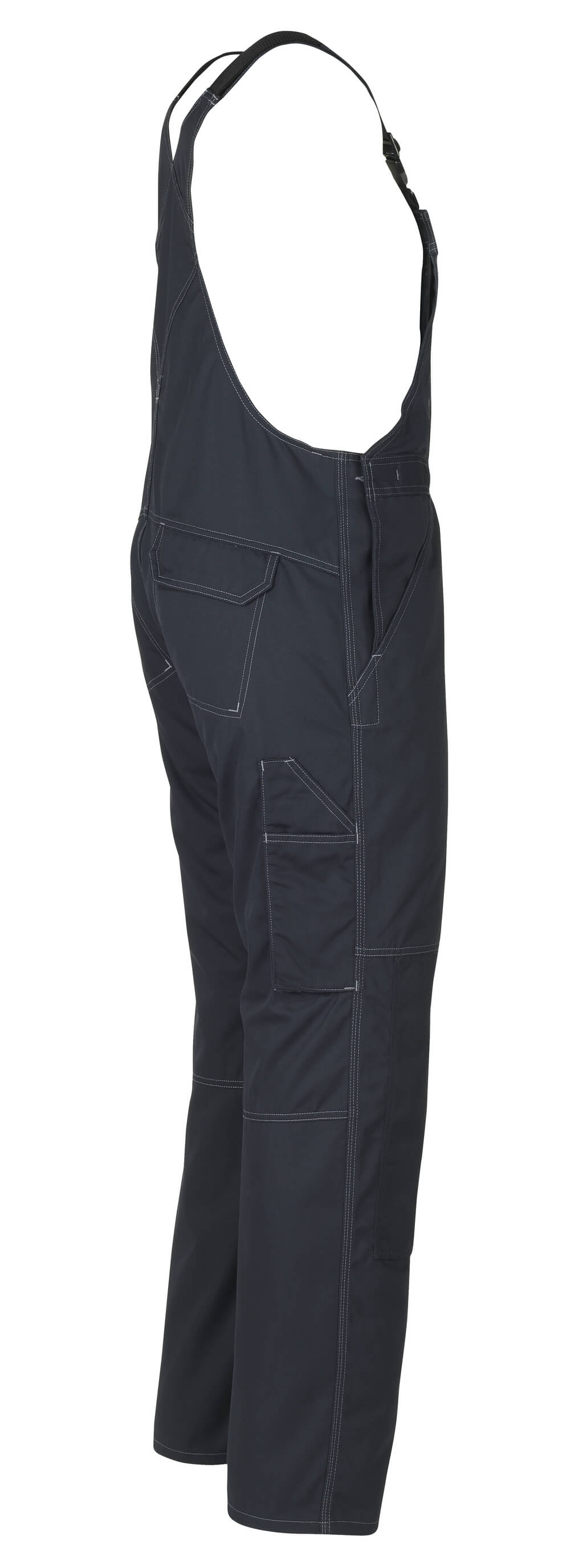 Tissu léger. Coutures triples sur les jambes et dans l'entrejambe. Bretelles ajustables en tissu et court ruban élastique très résistant - boucles en plastique. Poche sur la bavette avec rabat et boutons-pression non visibles/recouverts. Anneau en D. Poche intérieure avec fermeture par bande auto-agrippante. Taille réglable. Poches latérales. Braguette zippée. Poches arrière renforcées, sous rabat avec boutons-pression invisibles. Poche cuisse sous rabat avec boutons-pression non visibles/recouverts. Poche mètre pliant renforcée. Poches genouillères - réglables. Coutures contrastées. Double certification compatible avec le modèle de genouillères large selon la norme EN 14404-3.