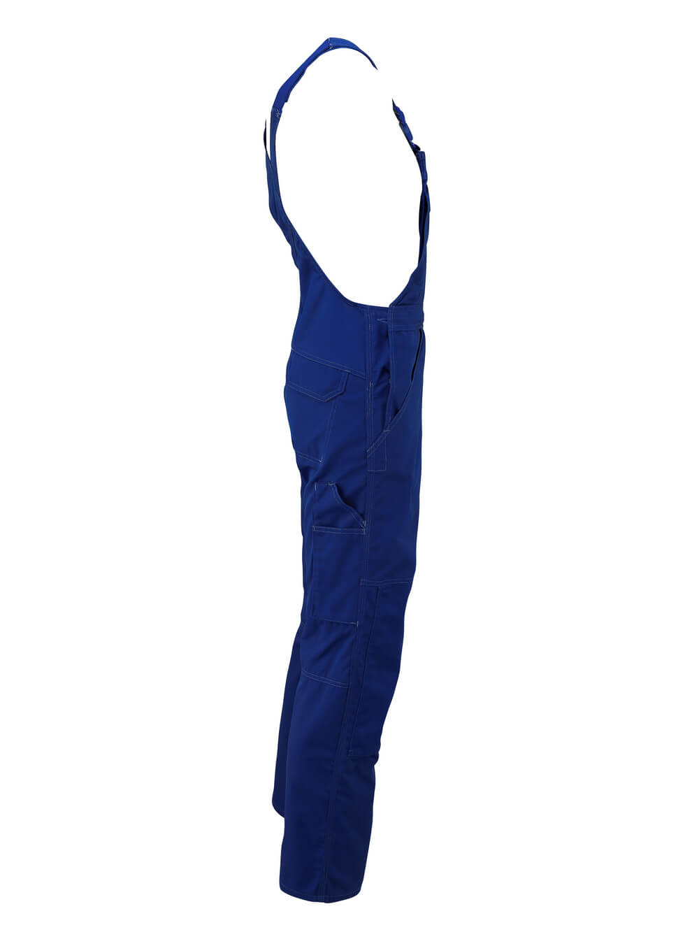 Tissu léger. Coutures triples sur les jambes et dans l'entrejambe. Bretelles ajustables en tissu et court ruban élastique très résistant - boucles en plastique. Poche sur la bavette avec rabat et boutons-pression non visibles/recouverts. Anneau en D. Poche intérieure avec fermeture par bande auto-agrippante. Taille réglable. Poches latérales. Braguette zippée. Poches arrière renforcées, sous rabat avec boutons-pression invisibles. Poche cuisse sous rabat avec boutons-pression non visibles/recouverts. Poche mètre pliant renforcée. Poches genouillères - réglables. Coutures contrastées. Double certification compatible avec le modèle de genouillères large selon la norme EN 14404-3.