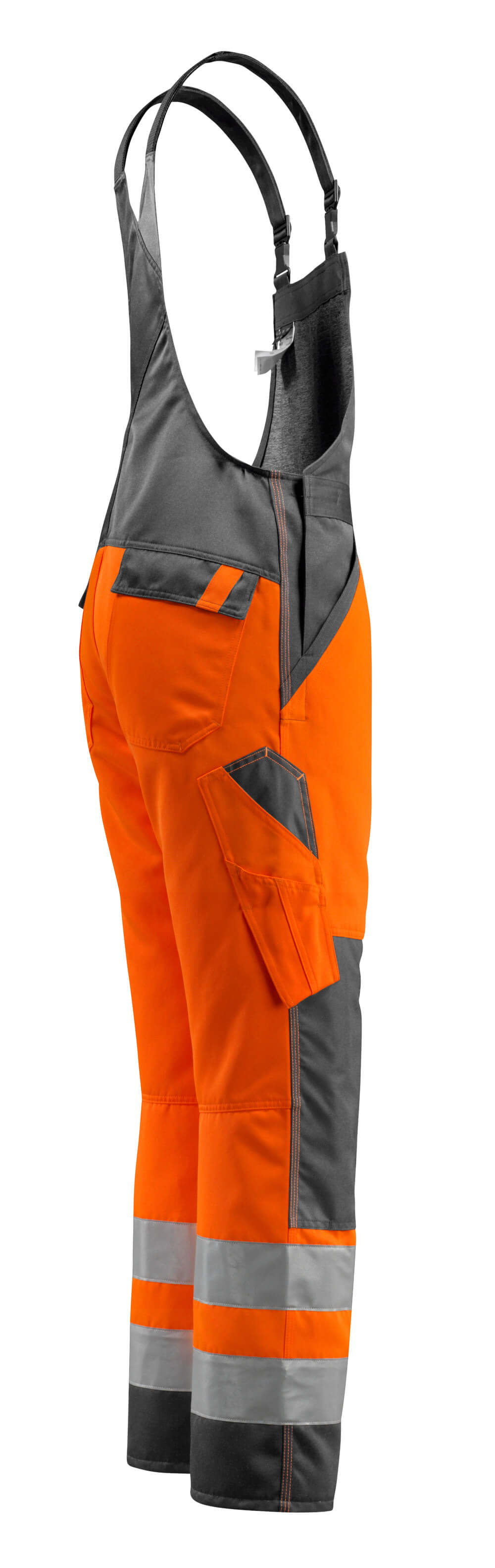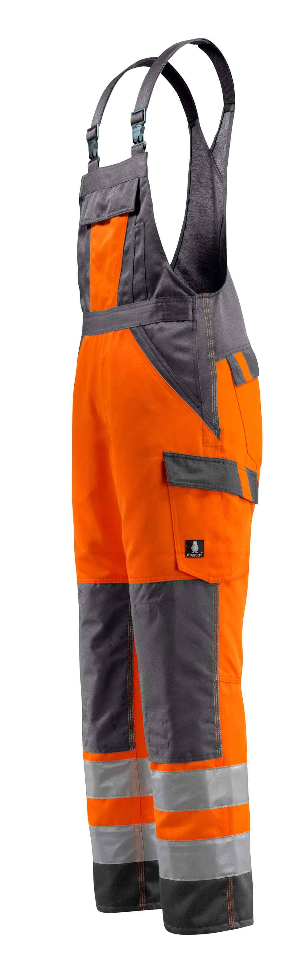 Bicolore. Coutures triples sur les jambes et dans l'entrejambe. Jambes ergonomiques. Bretelles ajustables en tissu et court ruban élastique très résistant - boucles en plastique. Poche bavette avec ouverture stylo - sous rabat avec boutons-pression invisibles. Taille réglable. Braguette zippée. Anneau en D. Poches latérales. Poches arrière sous rabat. Poche cuisse sous rabat avec boutons-pression non visibles/recouverts. Poche mètre-pliant avec ouverture renforcée. Poches genouillères reglables en polyester. Double certification compatible avec le modèle de genouillères large selon la norme EN 14404-3.