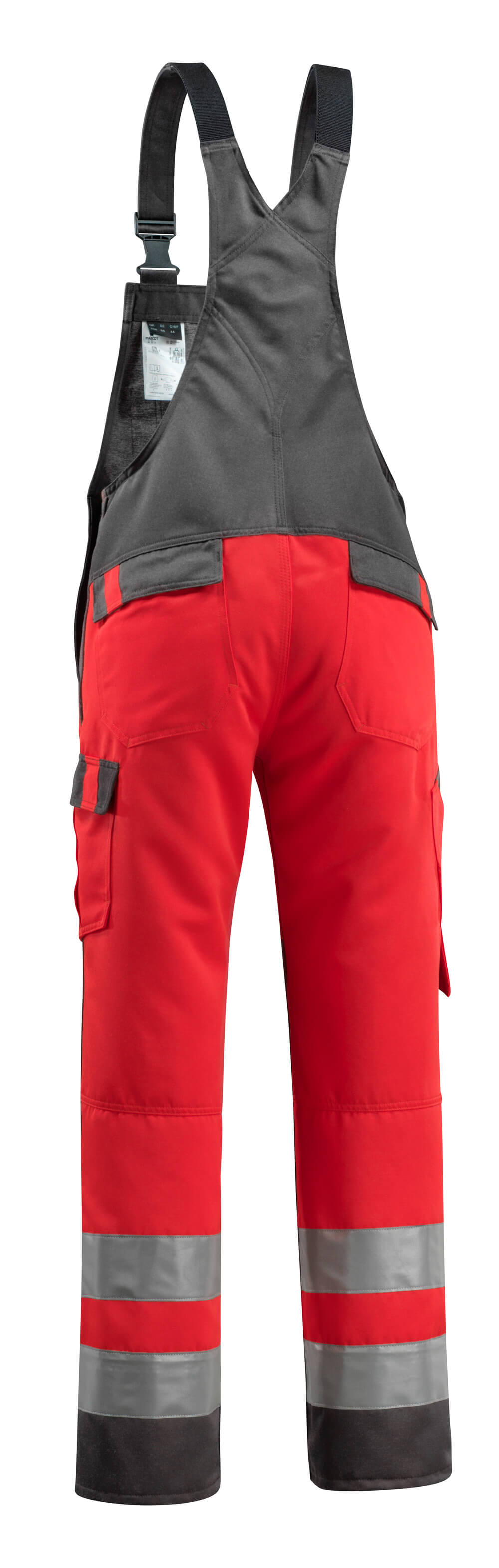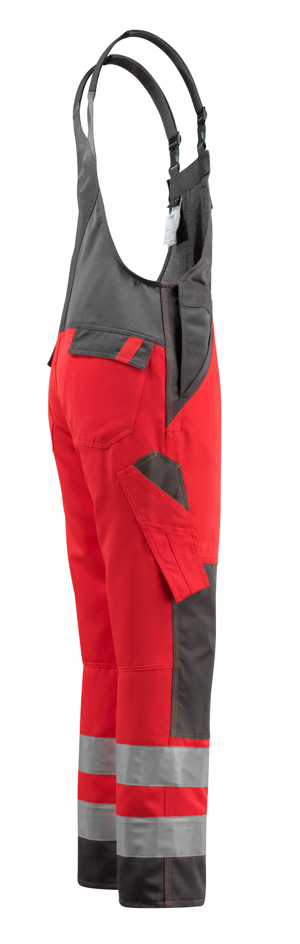 Bicolore. Coutures triples sur les jambes et dans l'entrejambe. Jambes ergonomiques. Bretelles ajustables en tissu et court ruban élastique très résistant - boucles en plastique. Poche bavette avec ouverture stylo - sous rabat avec boutons-pression invisibles. Taille réglable. Braguette zippée. Anneau en D. Poches latérales. Poches arrière sous rabat. Poche cuisse sous rabat avec boutons-pression non visibles/recouverts. Poche mètre-pliant avec ouverture renforcée. Poches genouillères reglables en polyester. Double certification compatible avec le modèle de genouillères large selon la norme EN 14404-3.