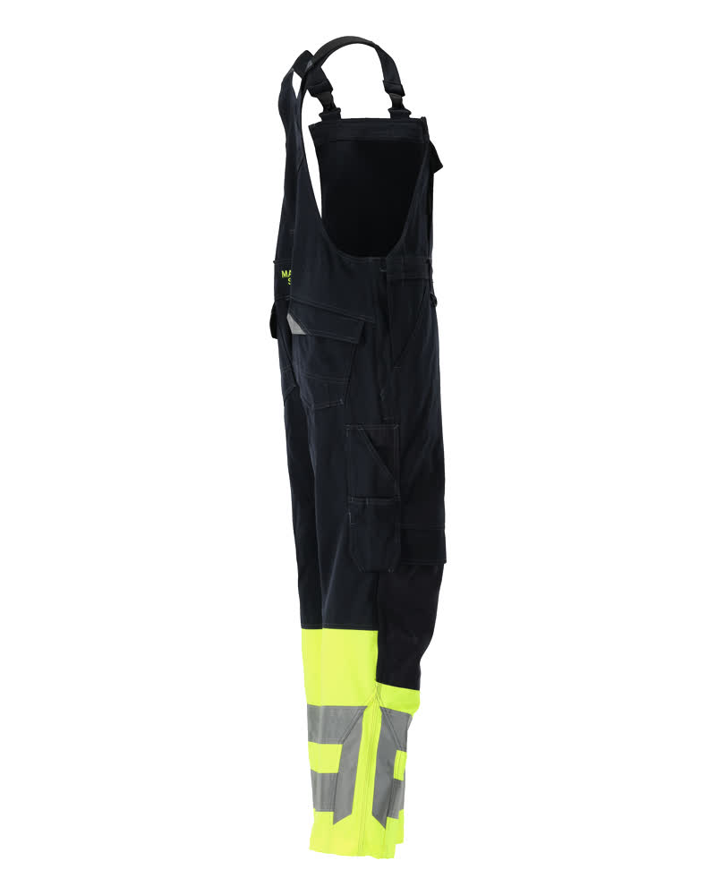 Couleur fluorescente et contrastée avec bandes rétroréfléchissantes. Le traitement de surface rend votre vêtement moins salissant. Bicolore. Coutures triples sur les jambes et dans l'entrejambe. Jambes ergonomiques. Bretelles ajustables en tissu et court ruban élastique très résistant - boucles en plastique. Les bouts des bretelles peuvent se dissimuler derrière la bavette à l'aide de petites sangles. Poche bavette avec poche stylo, poche téléphone zippée et rabat à boutons pression recouverts. Taille réglable. Passants de ceinture. Braguette zippée. Anneau en D. Poches latérales. Poches arrière renforcées, sous rabat avec boutons-pression invisibles. Patte-marteau réglable. Poche cuisse renforcée et dotée de poches supplémentaires - une poche téléphone intérieure ainsi qu'une extérieure sous rabat avec fermeture aimantée. Poche mètre-pliant avec ouverture renforcée en CORDURA®. Poches genouillères réglables en CORDURA® solide (500 D) sous rabat avec insertion des genouillères par le haut. Bandes rétroréfléchissantes verticales sur le côté des jambes pour une meilleure visibilité. Longueur d'entrejambe pouvant être rallongée de 3 cm en défaisant la couture rouge à l'intérieur vers le pied. Double certification compatible avec le modèle de genouillères large selon la norme EN 14404-3.
