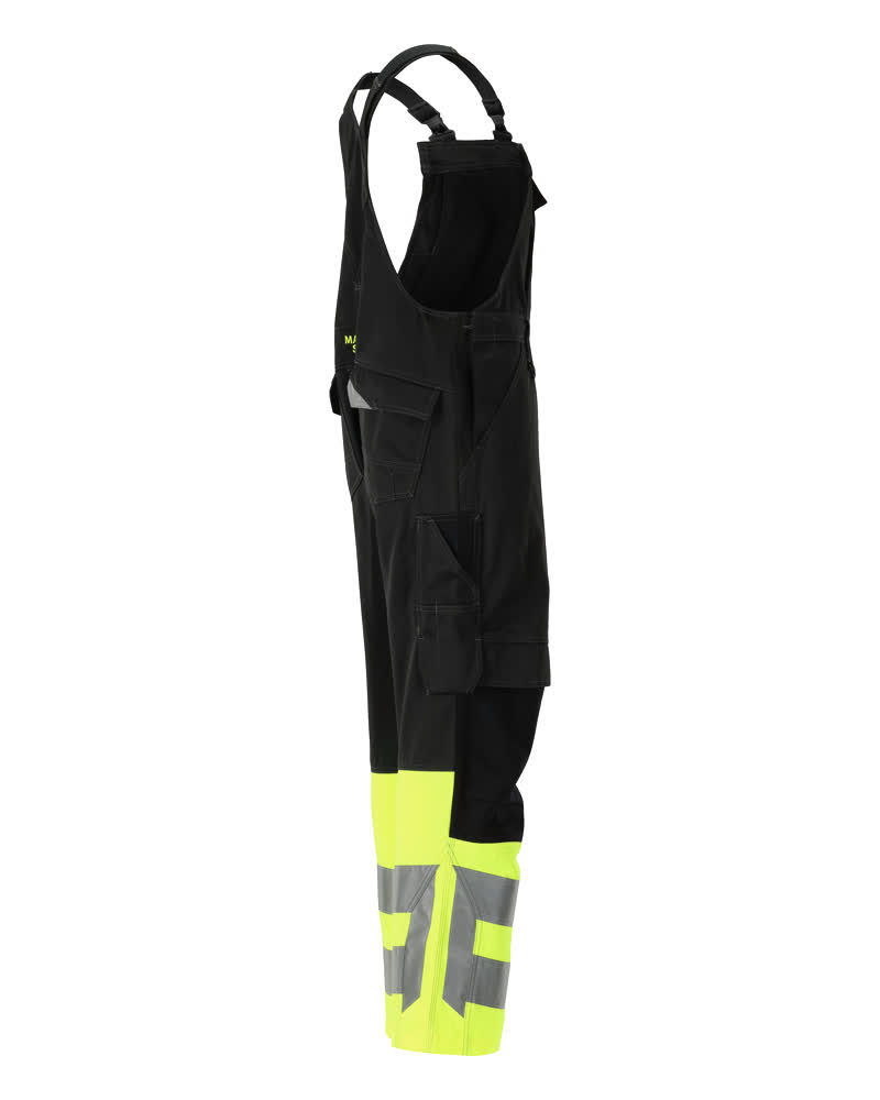 Couleur fluorescente et contrastée avec bandes rétroréfléchissantes. Le traitement de surface rend votre vêtement moins salissant. Bicolore. Coutures triples sur les jambes et dans l'entrejambe. Jambes ergonomiques. Bretelles ajustables en tissu et court ruban élastique très résistant - boucles en plastique. Les bouts des bretelles peuvent se dissimuler derrière la bavette à l'aide de petites sangles. Poche bavette avec poche stylo, poche téléphone zippée et rabat à boutons pression recouverts. Taille réglable. Passants de ceinture. Braguette zippée. Anneau en D. Poches latérales. Poches arrière renforcées, sous rabat avec boutons-pression invisibles. Patte-marteau réglable. Poche cuisse renforcée et dotée de poches supplémentaires - une poche téléphone intérieure ainsi qu'une extérieure sous rabat avec fermeture aimantée. Poche mètre-pliant avec ouverture renforcée en CORDURA®. Poches genouillères réglables en CORDURA® solide (500 D) sous rabat avec insertion des genouillères par le haut. Bandes rétroréfléchissantes verticales sur le côté des jambes pour une meilleure visibilité. Longueur d'entrejambe pouvant être rallongée de 3 cm en défaisant la couture rouge à l'intérieur vers le pied. Double certification compatible avec le modèle de genouillères large selon la norme EN 14404-3.