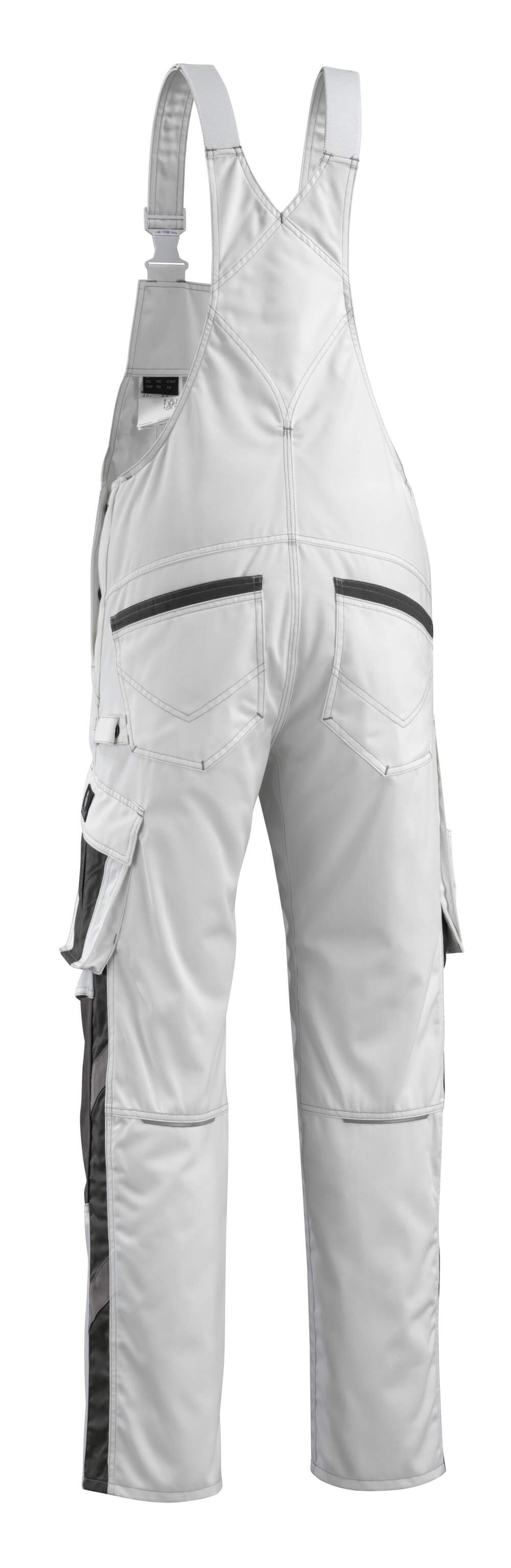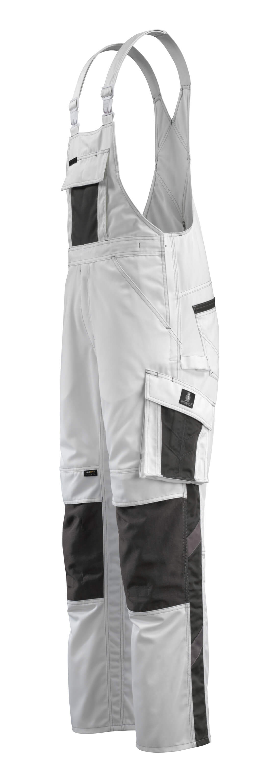 Bicolore. Tissu léger. Coutures triples sur les jambes et dans l'entrejambe. Bretelles ajustables en tissu et court ruban élastique très résistant - boucles en plastique. Poche bavette avec poche stylo, poche téléphone et rabat avec boutons-pression recouverts. Anneau en D. Poche intérieure avec fermeture par bande auto-agrippante. Taille réglable. Jambes ergonomiques. Braguette zippée. Poches latérales. Poches arrière renforcées. Patte-marteau réglable. Poche cuisse avec compartiment téléphone - rabat avec boutons-pression non visibles/recouverts. Poche mètre pliant renforcée. Poche stylo. Poches genouillères réglables en CORDURA® particulièrement solides (1000 D) sous rabat avec insertion des genouillères par le haut. Effets rétroréfléchissants. Double certification compatible avec le modèle de genouillères large selon la norme EN 14404-3.