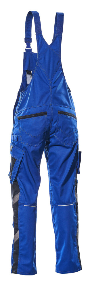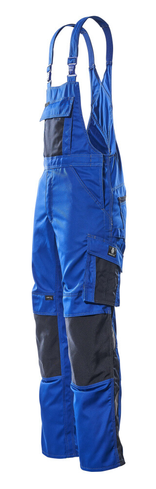 Bicolore. Tissu léger. Coutures triples sur les jambes et dans l'entrejambe. Bretelles ajustables en tissu et court ruban élastique très résistant - boucles en plastique. Poche bavette avec poche stylo, poche téléphone et rabat avec boutons-pression recouverts. Anneau en D. Poche intérieure avec fermeture par bande auto-agrippante. Taille réglable. Jambes ergonomiques. Braguette zippée. Poches latérales. Poches arrière renforcées. Patte-marteau réglable. Poche cuisse avec compartiment téléphone - rabat avec boutons-pression non visibles/recouverts. Poche mètre pliant renforcée. Poche stylo. Poches genouillères réglables en CORDURA® particulièrement solides (1000 D) sous rabat avec insertion des genouillères par le haut. Effets rétroréfléchissants. Double certification compatible avec le modèle de genouillères large selon la norme EN 14404-3.